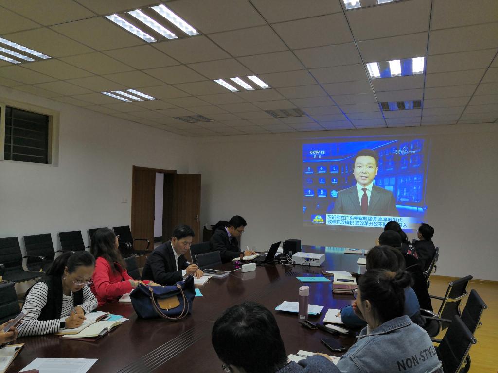 会上,党总支书记张洪坤带领大家共同学习了习近平总书记视察广东重要讲话精神,他希望大家将弘扬爱国奋斗精神与学习贯彻落实习近平总书记视察广东重要讲话精神相结合,进一步解放思想、攻坚克难,不惧风险、勇于创新,为学校各项事业的发展贡献自己的力量。