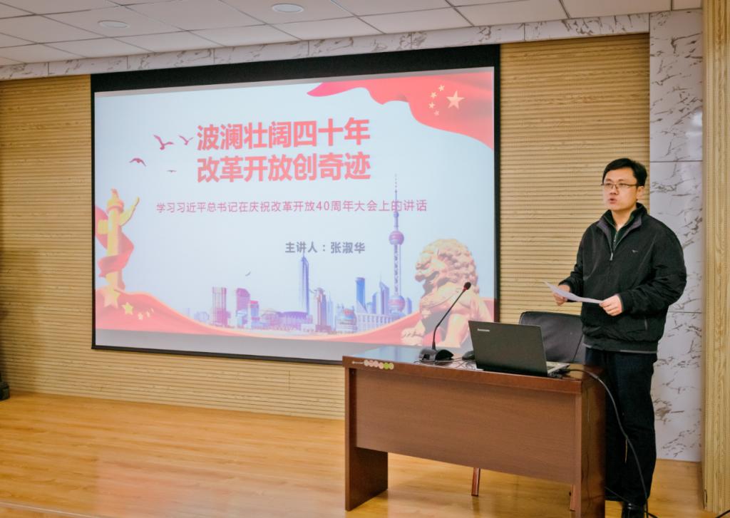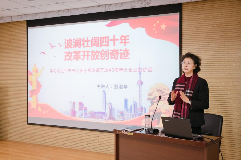 课上,张淑华首先带领同学们一起回顾了祖国改革开放四十年的巨大成就,并从四个基于,三大里程碑,十个始终坚持,三个伟大飞跃,三个充分证明,九个必须坚持等方面对习近平总书记在庆祝改革开放40周年大会上重要讲话精神进行了深入解读。解读中,张校长结合自身体验,贴近生活,贴近实际,带领大家充分了解了改革开放40年积累的宝贵经验,让大家对改革开放四十年的发展成就与曲折历程有了更加深入的了解,充分感受到改革开放40年来,我们党引领人民绘就的波澜壮阔、气势恢宏的历史画卷,谱写的感天动地、气壮山河的奋斗赞歌。