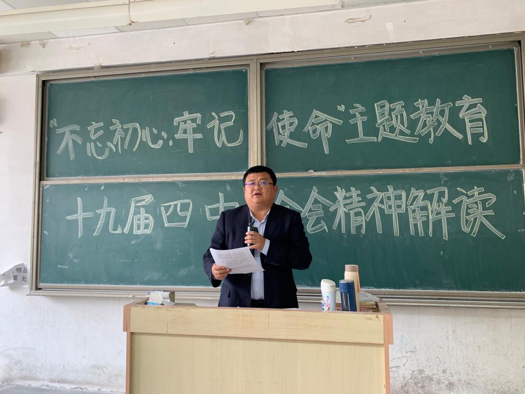 会上,宋飞详细解读了习近平总书记在党的十九届四中全会上的重要讲话精神,带领大家学习了全会部分内容。他表示,党的十九届四中全会是在新中国成立70周年之际,召开的一次具有开创性意义的会议,充分体现了我们党先进的执政理念、高度的制度自信和强大改革勇气。他强调,要把学习贯彻全会精神与学院正在开展的“不忘初心、牢记使命”主题教育结合起来,学深悟透、融会贯通,切实把思想和行动统一到全会精神上来,贯穿于学院工作、教学的多方位、全过程。