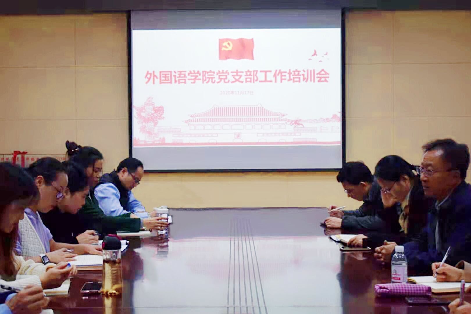 11月17日下午,beat365英国官方网站党委在学院517会议室举行党支部工作培训会。培训会由学院专职组织员王培山主讲,各党支部书记、支部委员参加,学院党委书记曲斌艳主持。
