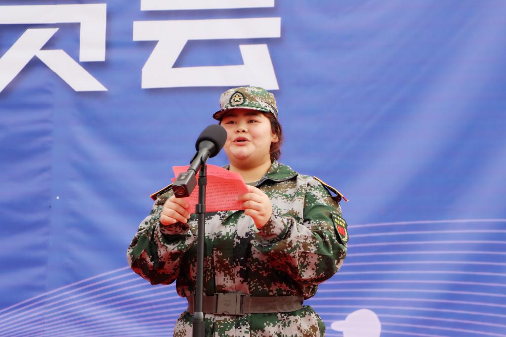 互联网科技学院2023级信息安全技术应用2班黄灿洁同学代表全体参训学生作了发言,她表示,将发扬不怕艰难险阻、勇于拼搏进取的精神,以军人的标准严格要求,圆满完成各项军训任务。