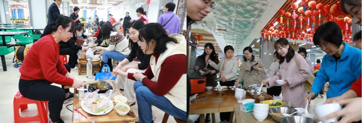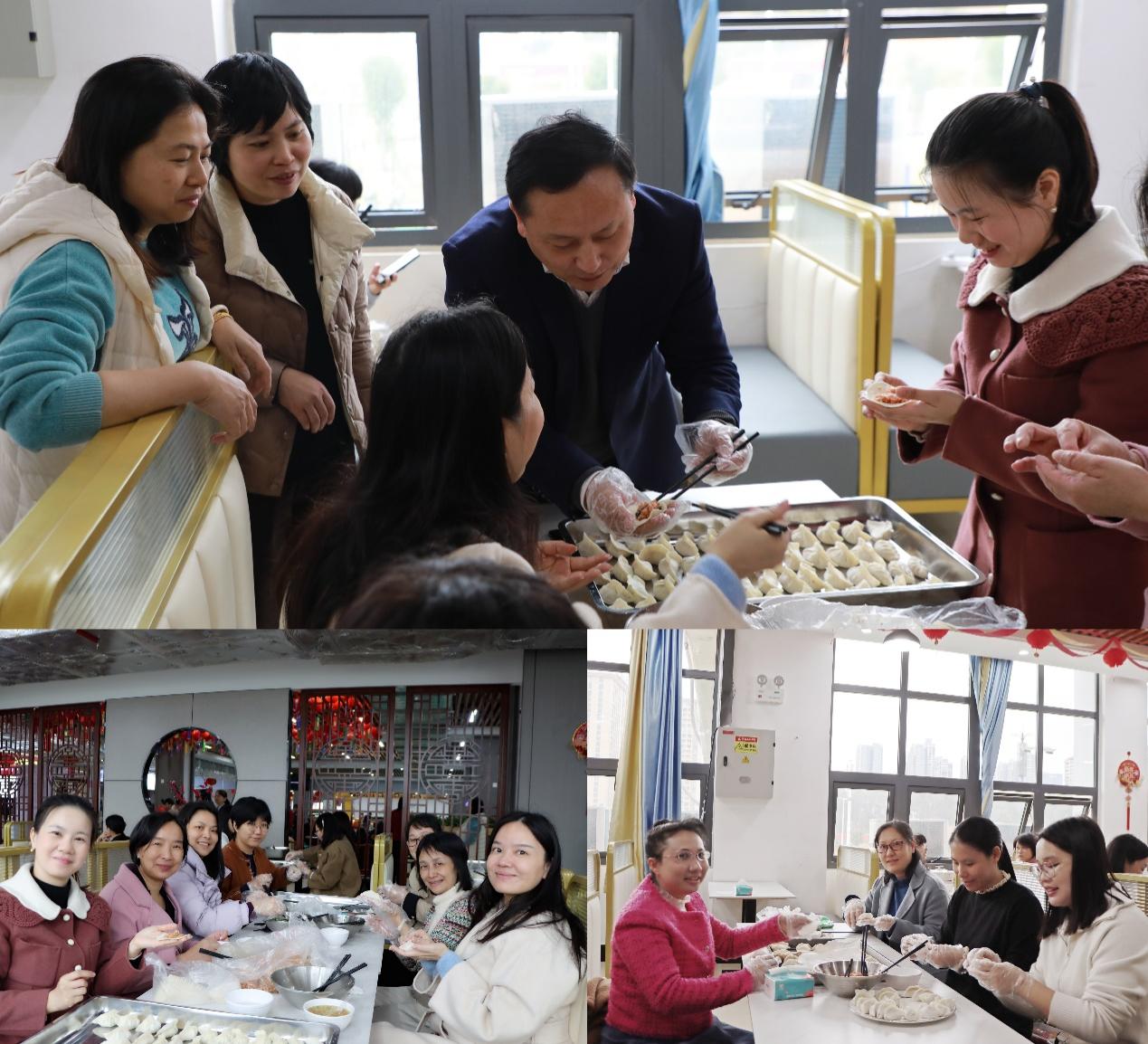 在包饺子的活动现场,大家各有策划、各施创意、各显神通。在女教职工们的巧手中,饺子被包成“麦穗形”“元宝形”“月牙形”“三角形”“圆肚形”“花朵形”等等。一个个独具特色、形态各异的饺子,充分展现出大家的技艺和智慧。当一盘盘热气腾腾的饺子被端上了餐桌,大家有滋有味地品尝了自己亲手包的饺子。如此温馨和谐的气氛,让大家都感受到了浓浓的“家”的味道。