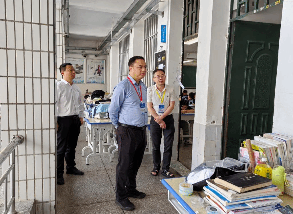 学校领导在南宁市第一职业技术学校(新阳校区)考点进行巡视