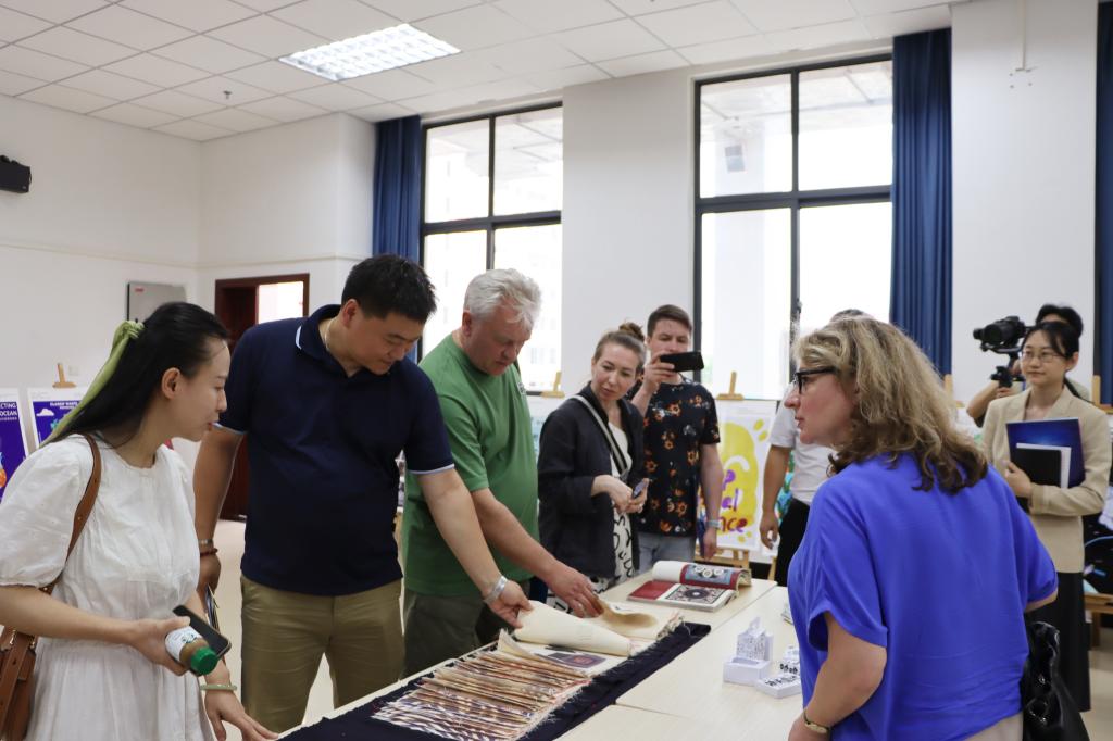 座谈会后,俄方一行旁听了学校数字艺术学院的专业课程,参观了师生的平面、动画设计作品和壮族非物质文化遗产实物设计作品,俄方对作品创作的专业性和艺术性非常赞赏,尤其对师生们在中华优秀传统文化的传承和创新方面所做的努力表示赞扬。