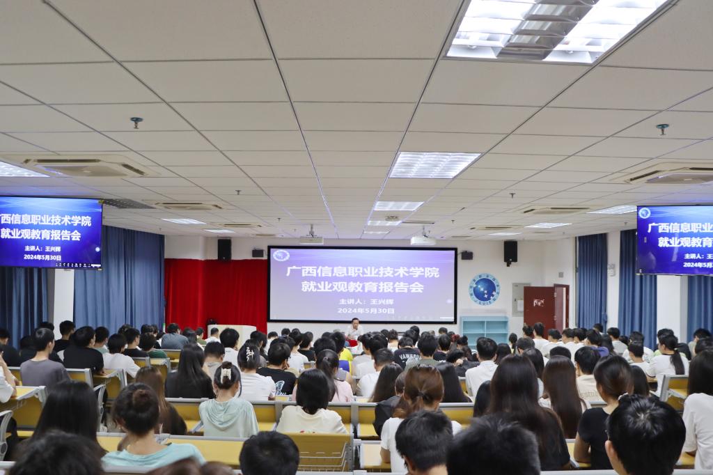 招生就业处全体人员、各二级学院班子成员、全体辅导员、就业指导老师和2021级、2022级部分学生参加了报告会。