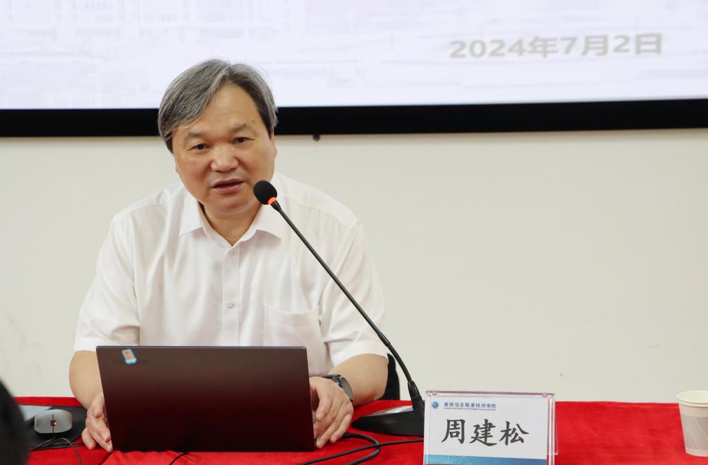 会议邀请浙江金融职业学院党委书记周建松作立德树人体系构建与育人质量提升专题报告,邀请广西工商职业技术学院教授朱明秀作超星学习通混合教学示范课展示,互联网科技学院教师管娜作优慕课混合教学示范课展示。各二级学院(教学部)就学校教学质量提升与体系建设工作分组讨论并作教学工作汇报。文理学院全体教职工、广信职院全体教职工参加会议。