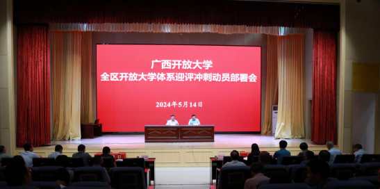 教务处 霍进萍 报道 5月14日下午,为进一步做好迎接国家开放大学、教育部教育质量评估中心对全区开放大学体系的评估工作,加强对实地迎评工作的领导和统筹安排,pg娱乐召开全区开放大学体系迎评冲刺动员部署会。学校领导王兴辉、黄美娟、龙雪津、翁洁、辛立章参加会议,pg娱乐电子游戏官网入口总部全体教职工在东宝校区一楼报告厅线下参会,各市开放大学全体教职工线上参会。会议由校长王兴辉主持。