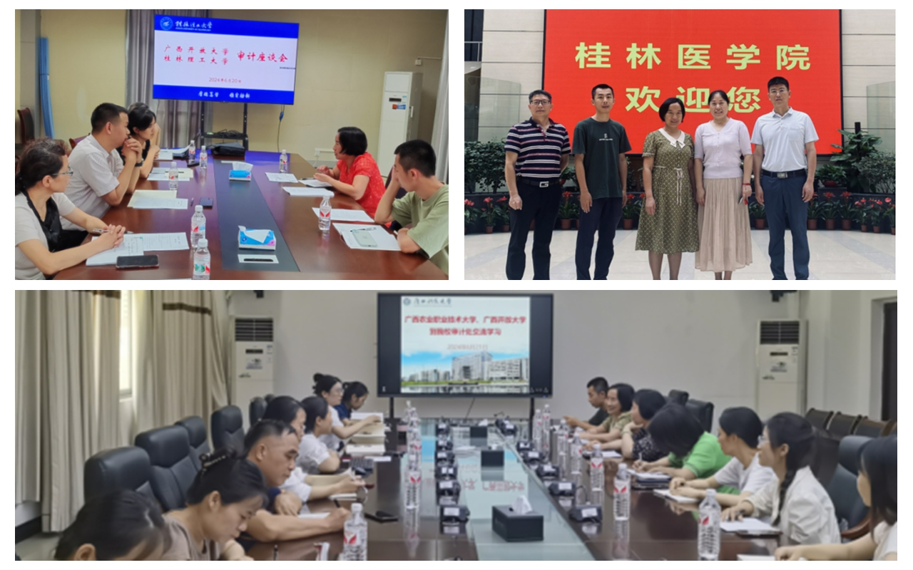 本次调研主要围绕经济责任审计、建设工程审计、审计数字化建设、研究型审计实践等专题进行工作经验交流。在调研座谈会上,桂林理工大学分享了经济责任审计的标准化、规范化工作经验;桂林医学院介绍了高校经济责任审计的路径优化举措,分享了桂林医学院审计系统的数字化建设经验;广西科技大学就经济责任审计、建设工程审计等内容及研究型审计实践模式进行了深入交流,并展示了广西科技大学内部审计系统的数字化实践成果。