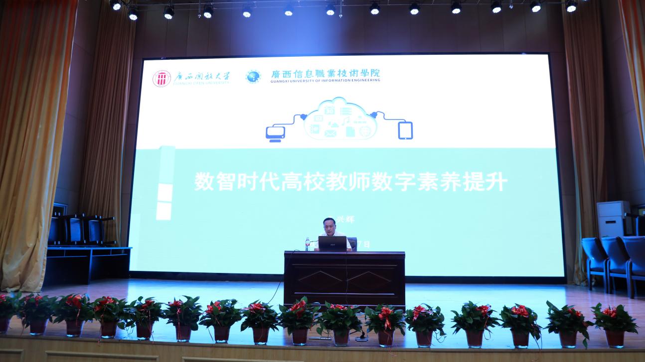 校长王兴辉以《数智时代高校教师数字素养提升》为题进行了专题授课,帮助教师们了解数字化背景下高校教师所面临的形势、机遇和挑战,要求老师们不断提升数字技能与思维能力,为推动学校发展贡献力量。