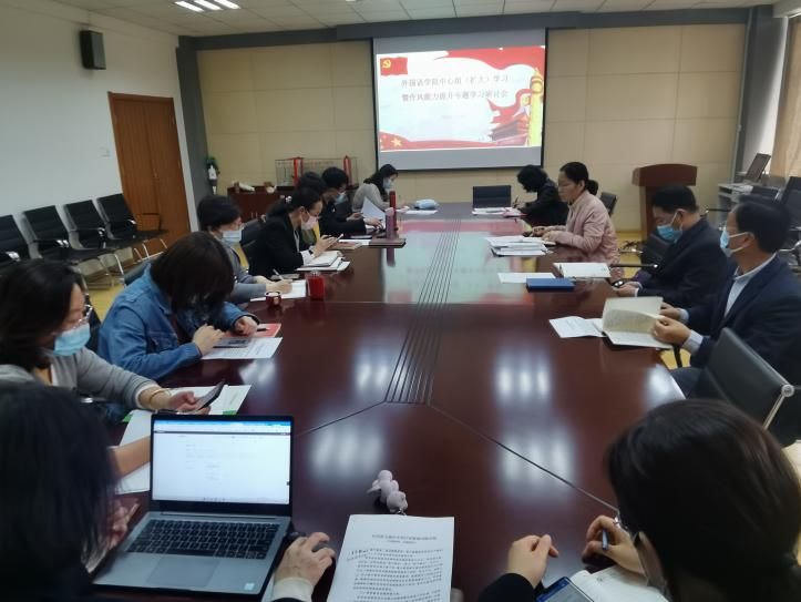 对照习近平总书记关于加强作风建设的指示批示精神、省委有关作风建设的要求与会人员进行深入的研讨交流,副院长康宁,辅导员李东阳、王雨昕,办公室张亚妮、裴淑娟等围绕作风能力谈认识、谈体会,联系学院及自身工作实际研讨存在的问题,剖析思想根源,提出改进措施。