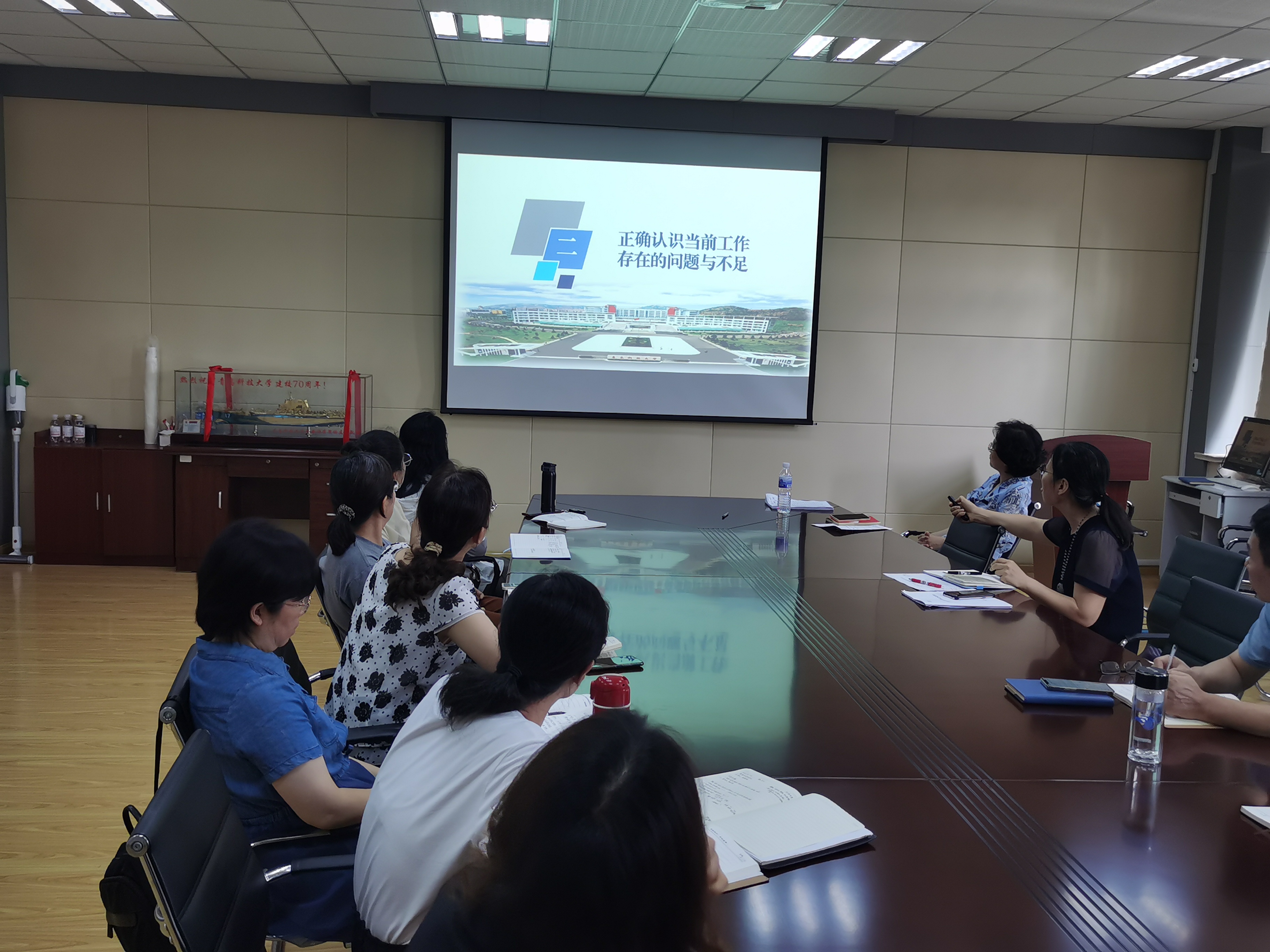 与会人员集体观看了苏州大学原校长熊思东教授的讲座视频《新时代高等教育的挑战与发展》,熊教授指出,高等教育已发生历史性变革,大学应回归和固守大学本位,明确大学的本质与使命,主动适应和对接社会的需求。集体学习了陈克正校长在中层干部会上的报告。