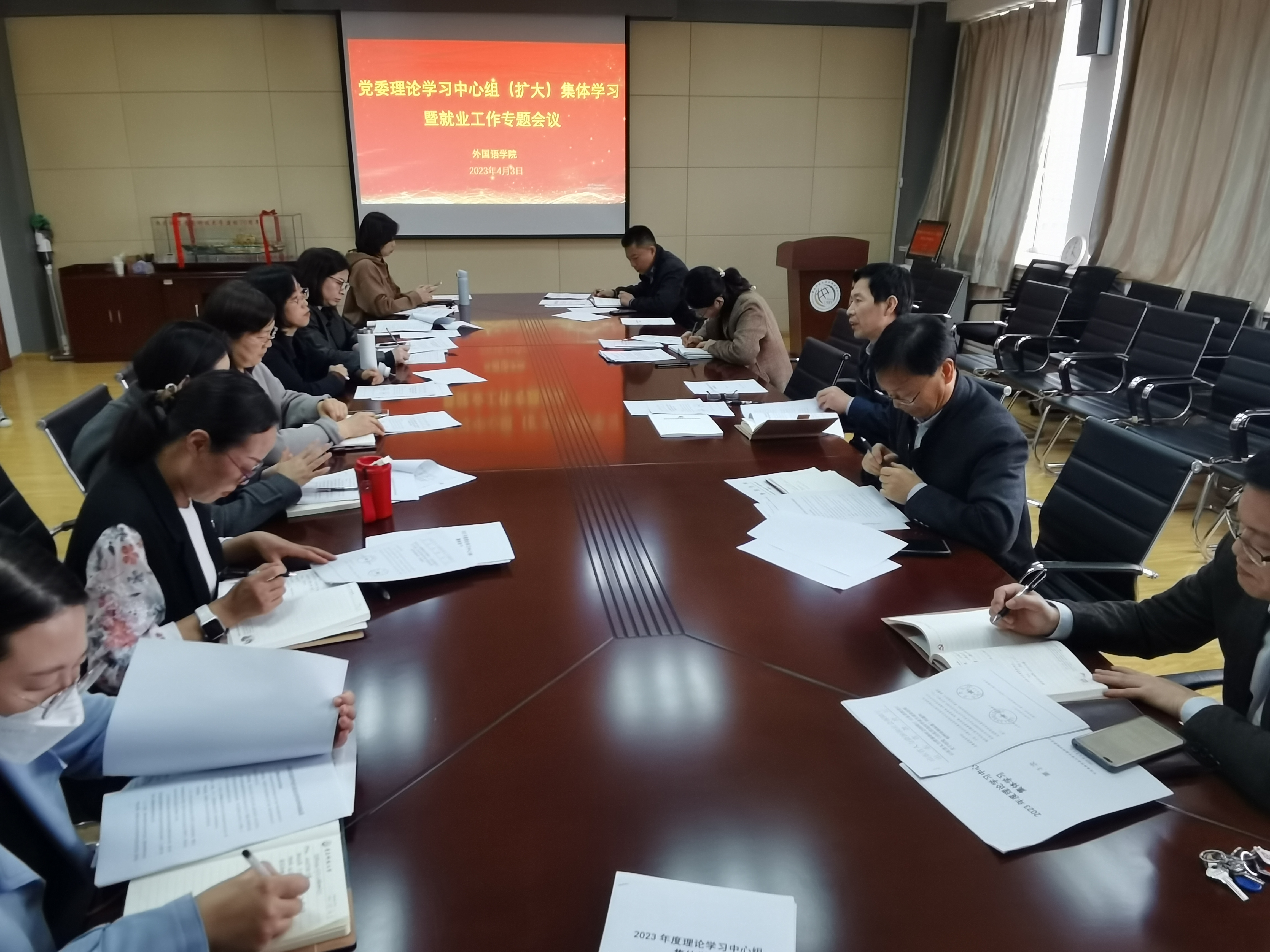 2023年4月3日下午,beat365英国官方网站党委理论学习中心组(扩大)在学院517会议室进行集体学习,围绕就业主题进行专题学习与研讨。党委委员、党支部书记、系主任、以及全体辅导员参加了此次会议。会议由学院党委书记曲斌艳主持。