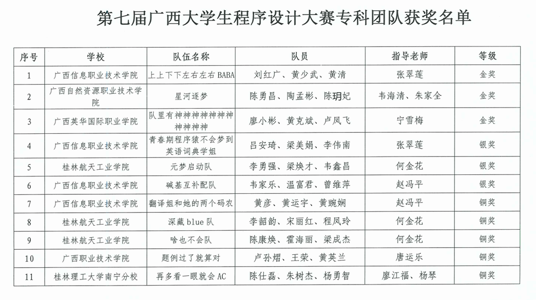 计算机与人工智能学院 李春阳 报道 在第七届广西大学生程序设计大赛暨2024中国—东盟国际大学生程序设计大赛中,pg娱乐参赛小组取得1金2银1铜的好成绩。