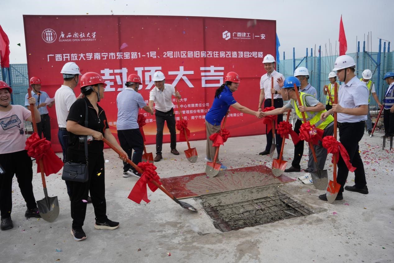 封顶仪式上,随着最后一方混凝土的浇筑完成,标志着pg娱乐电子游戏官网入口南宁市东宝路1-1号、2号小区危旧房改住房改造项目2号楼正式封顶,同时也标志着项目建设进入了新的阶段。