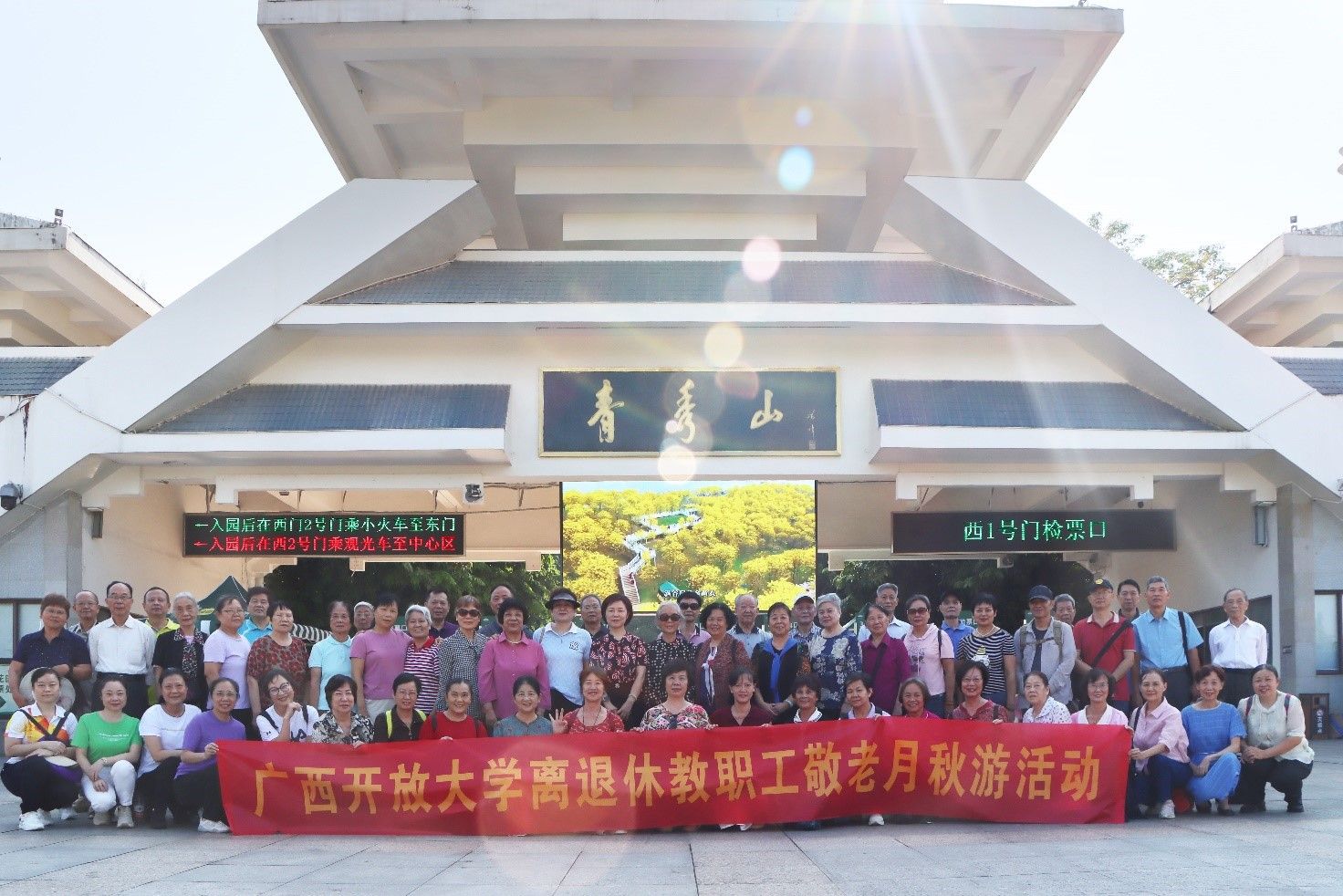 工会离退办陈芳报道 登高赏秋色,携手迎重阳。10月11日上午,pg娱乐组织离退休教职工到青秀山风景区开展“乐龄乐享 情暖重阳”秋游活动。副校长、工会主席李敏智参加活动。