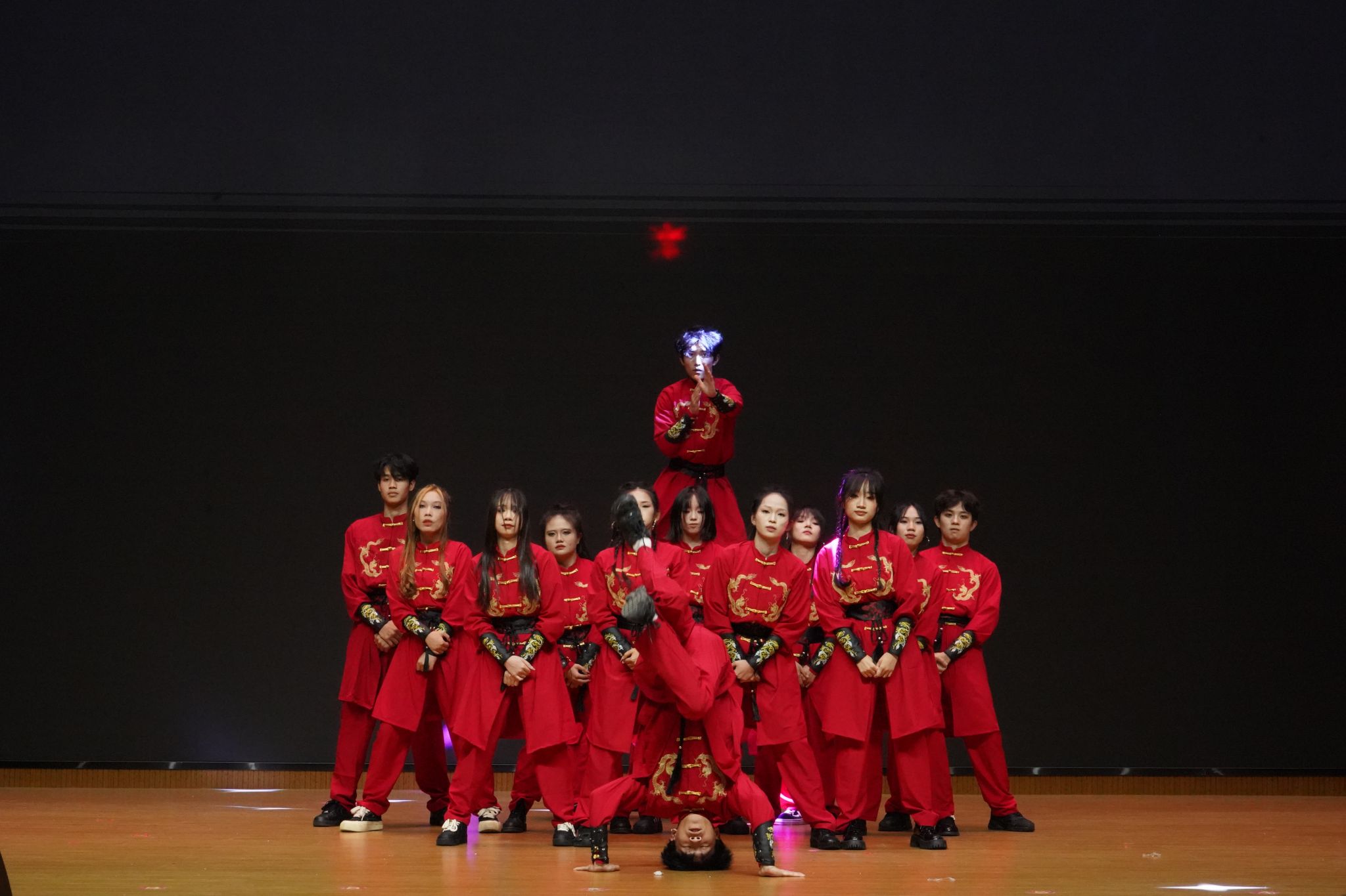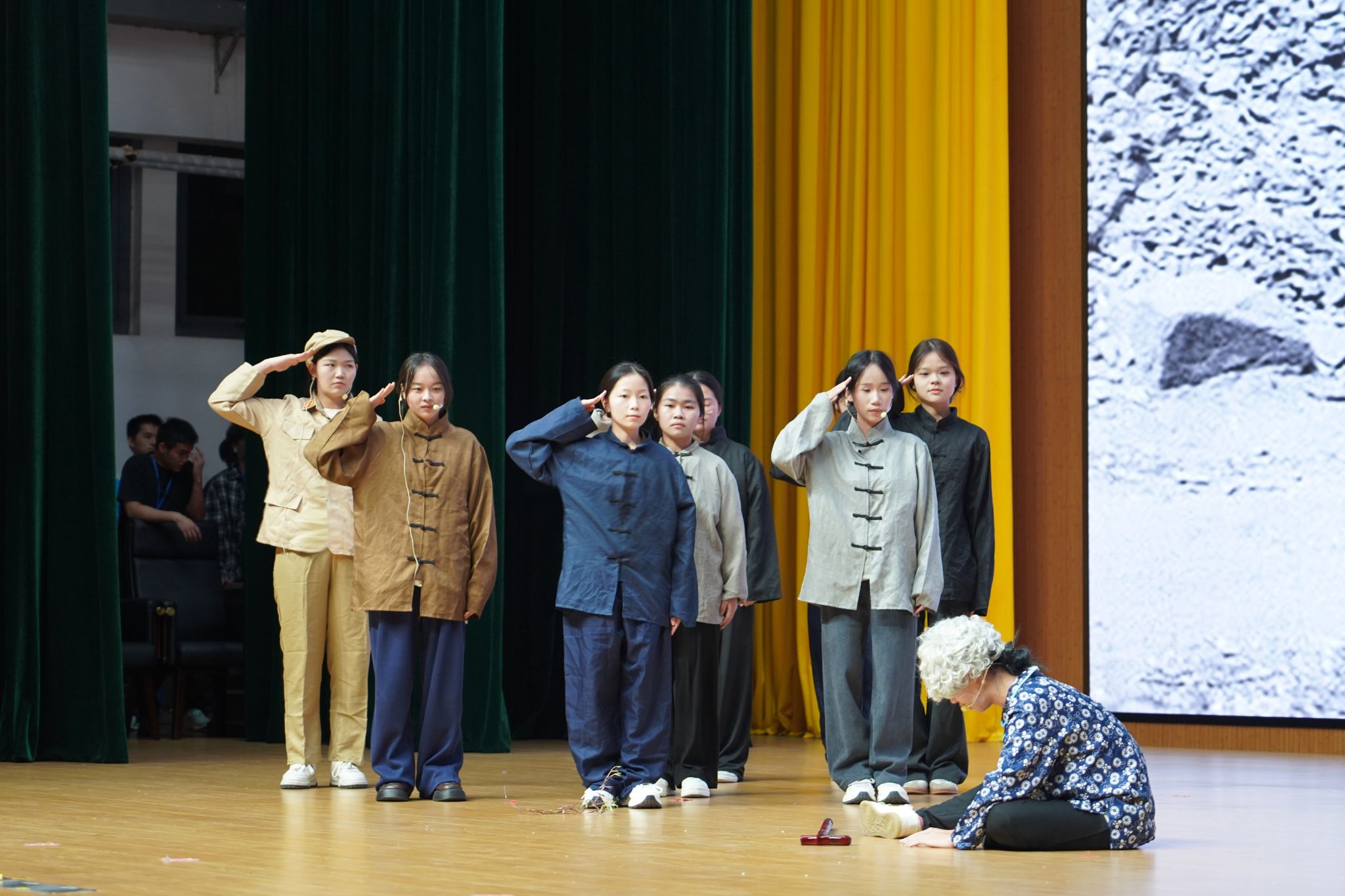 伴随着璀璨的灯光、喜庆的锣鼓,晚会在大鼓和舞狮表演《精忠报国》中拉开序幕。演出共分为“心向璀璨启新程”“青春飞扬展风采”“奋发有为谱华章”三个篇章,涵盖合唱、舞蹈、小品、说唱、影子戏、情景剧等形式多样的节目,台上的演员们用饱满的热情和精彩的表演,感染着在场的观众,现场掌声此起彼伏。