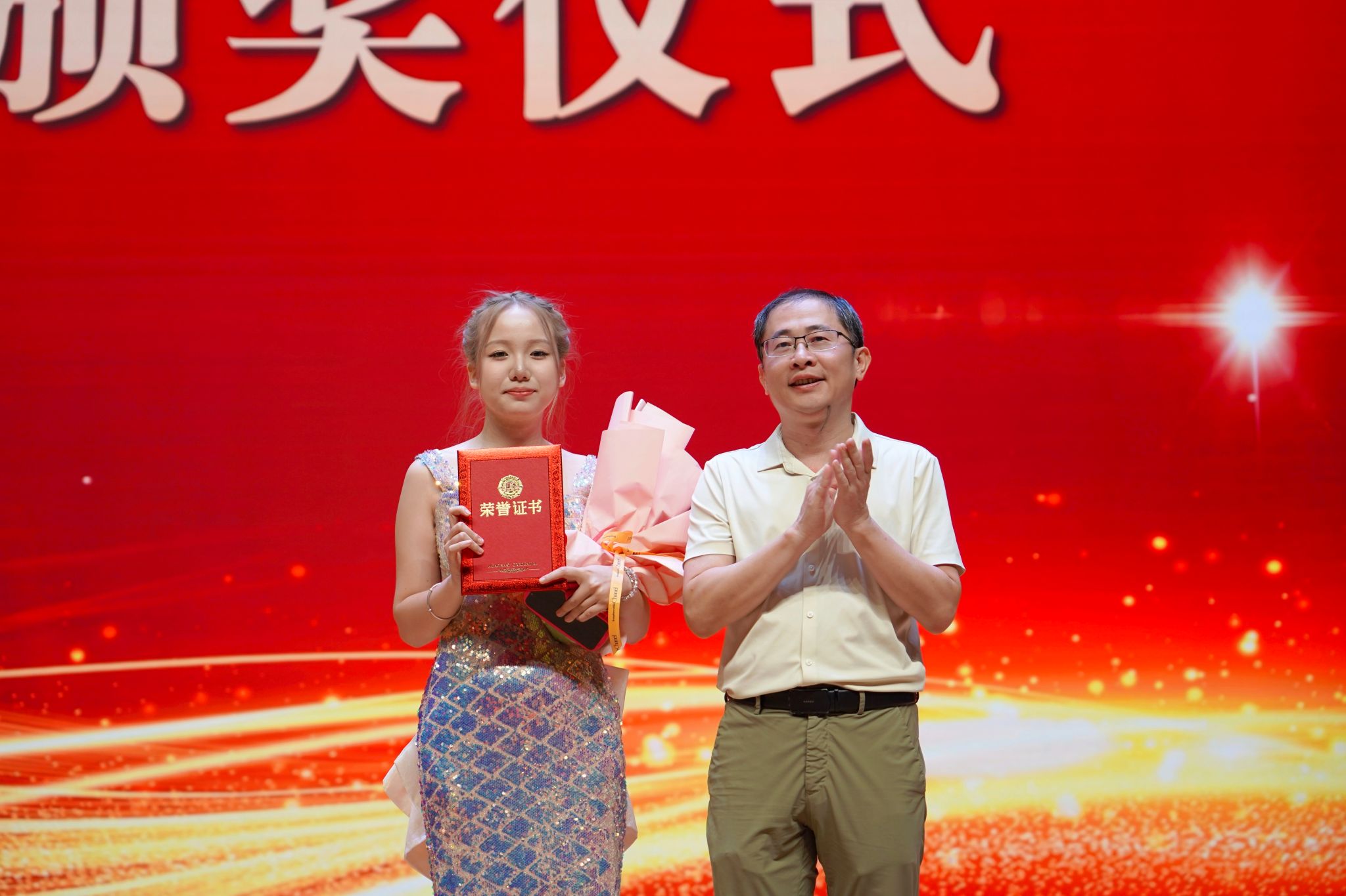 pg娱乐电子游戏官网入口党委副书记龙雪津为节目一等奖获得者颁奖