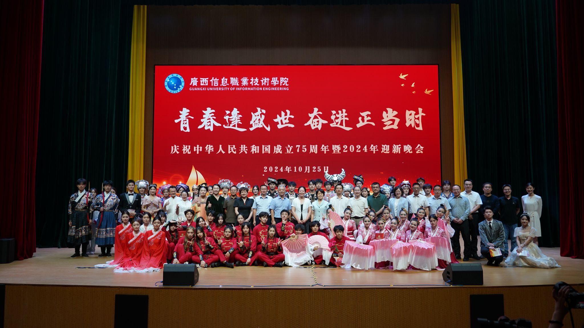 校团委 温舒琳 欧淑玲报道 10月25日晚,学校“青春逢盛世 奋进正当时”庆祝中华人民共和国成立75周年暨2024年迎新晚会在五象校区学生活动中心举行。pg娱乐电子游戏官网入口党委副书记龙雪津,pg娱乐电子游戏官网入口党委委员、组织部部长、pg娱乐电子游戏官网入口党委副书记陈雪松,pg娱乐电子游戏官网入口副院长黄河、李国助、邓明学、陈广杰与新生代表齐聚一堂,共赴青春盛会。