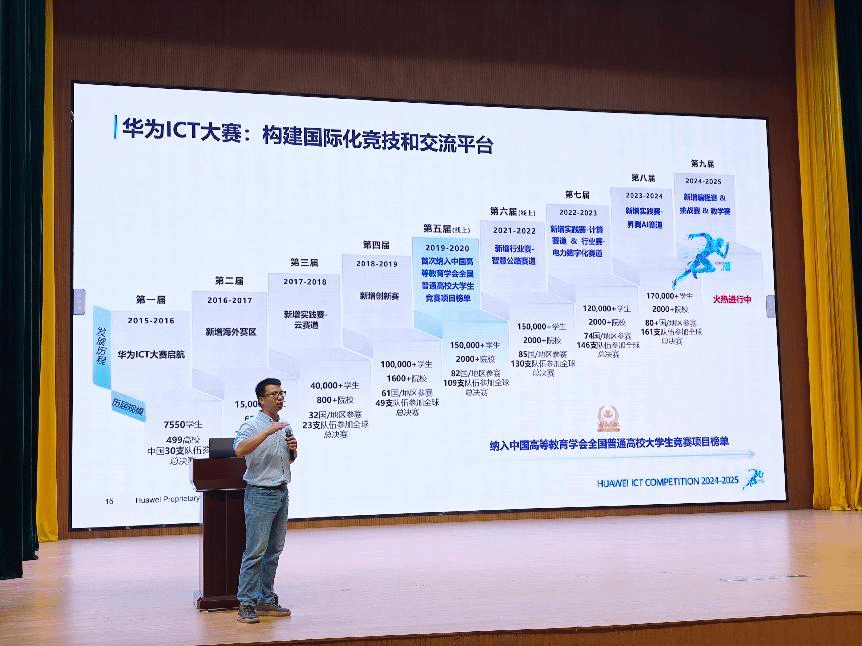 计算机与人工智能学院 史茹欣报道 10月17日,pg娱乐在五象校区学生活动中心成功举办了“赢自认证 智驭未来”华为技术分享会暨华为ICT大赛宣讲活动。本届赛事分为多个赛道,涵盖网络、云计算、AI、基础软件等领域,其中面向学生的赛道有实践赛、创新赛、编程赛。