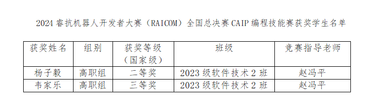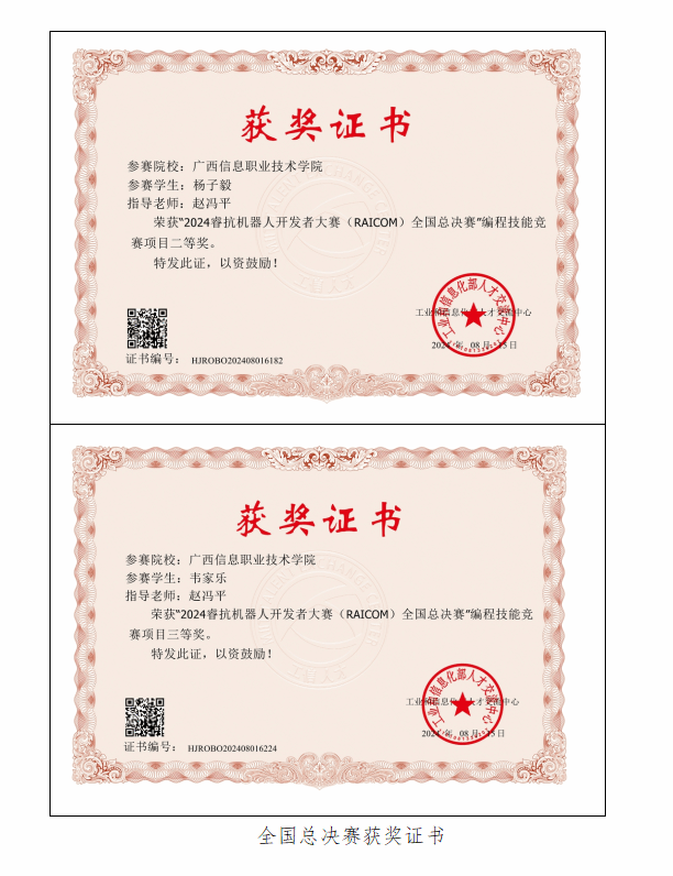 计算机与人工智能学院 刘明权 报道 在2024年睿抗机器人开发者大赛(RAICOM)全国总决赛中,pg娱乐学生杨子毅、韦家乐在编程技能竞赛项目中分别获得二等奖和三等奖,这是pg娱乐首次组织学生参加这一赛事。