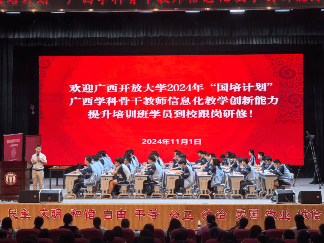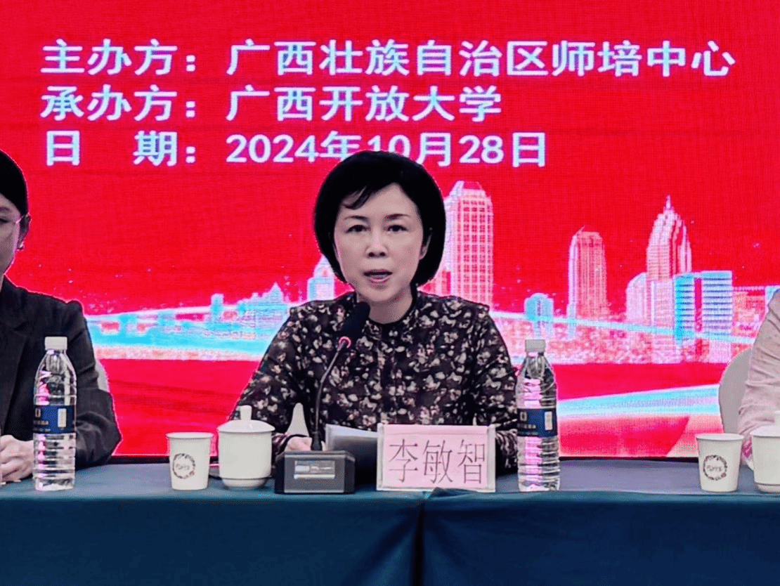 培训学院 李春阳 陈思敏报道 10月28日至11月3日,由自治区教师培训中心主办,pg娱乐承办的广西2024年“国培计划”第二批自治区统筹项目——广西学科骨干教师信息化教学创新能力提升培训班在南宁市顺利举行,来自全区各地市的127位学科骨干教师参加了本次培训。副校长李敏智出席开班仪式并讲话。