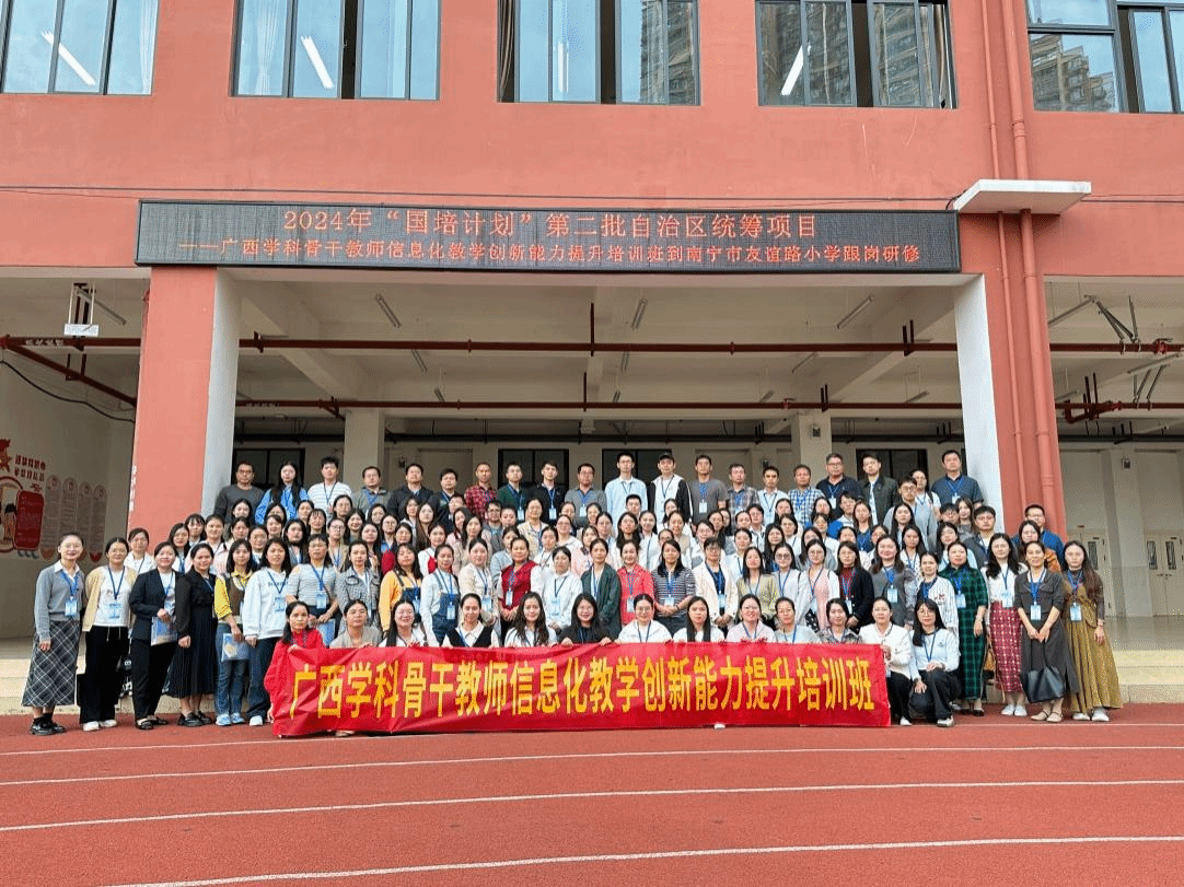 本次培训班采用了集中面授、网络研修、跟岗研修等多种方式结合进行,课程类型涵盖专题讲座、应用分析、方法指导、实践操作等,并精心安排了两次外出研修活动——赴南宁市友谊路小学和南宁市第二中学进行实地参观、课堂观摩和经验分享活动。旨在帮助学员提升利用数字技术获取、加工、使用、管理和评价数字信息和资源,发现、分析和解决教育教学问题,优化、创新和变革教育教学活动而具有的意识、能力和责任,探索不同环境下信息技术支持教学创新的实践案例,推动学校教育教学改革创新,形成持续发展的机制。