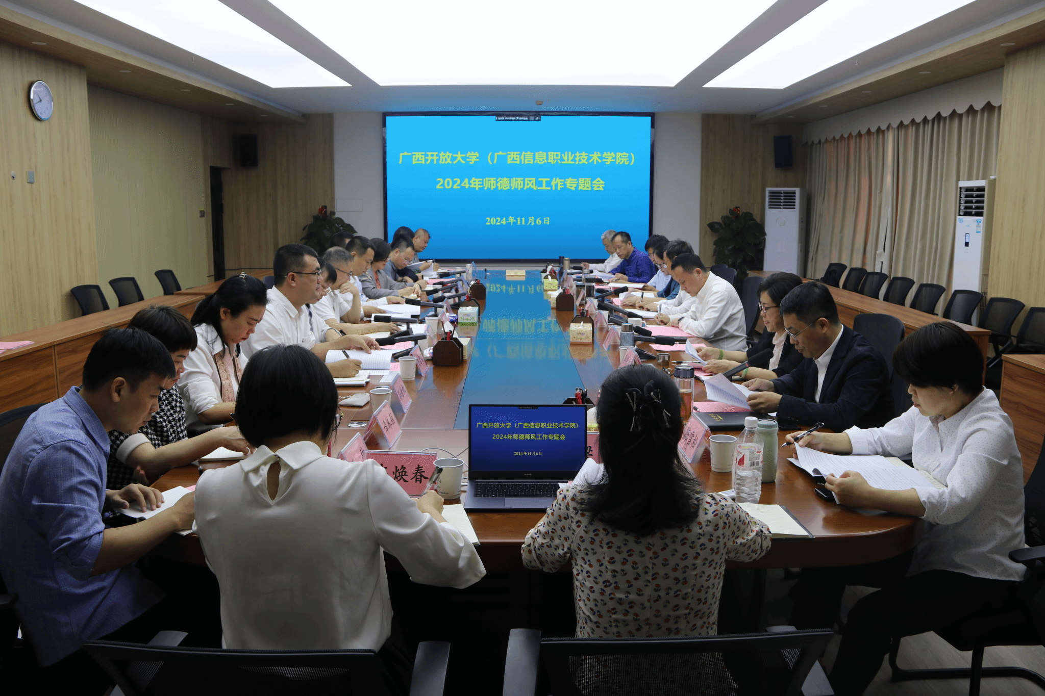 人事处 李芳报道 11月6日上午,pg娱乐在东宝校区远教大厦1101会议室召开2024年师德师风工作专题会议。学校领导王兴辉、龙雪津、翁洁、李敏智、刘绍英、辛立章、侯宗毅等学校领导,pg娱乐电子游戏官网入口院级副职领导,各二级学院党总支书记、院长,学工部、教务处、党委教师工作部负责人参加会议。