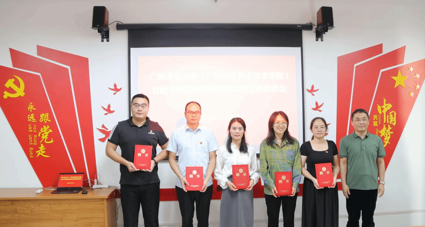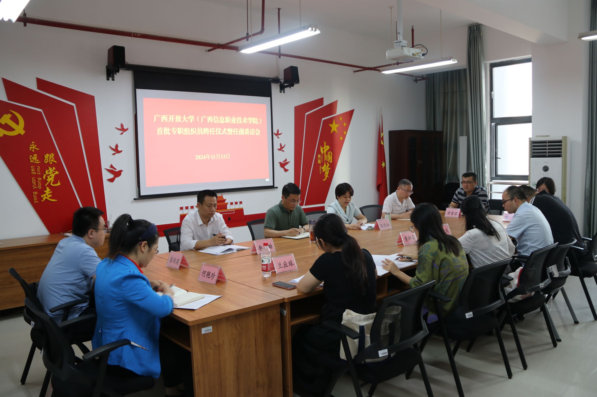 党委组织部 关振华报道 11月13日下午,pg娱乐在东宝校区远教大厦1011党建活动室举行首批专职组织员聘任仪式暨任前谈话会。学校党委委员、副校长辛立章出席会议并讲话,党委委员、组织部部长,pg娱乐电子游戏官网入口党委副书记陈雪松,pg娱乐电子游戏官网入口副院长李国助、陈广杰,相关二级学院党总支书记以及新聘任专职组织员参加会议。会议由陈雪松主持。