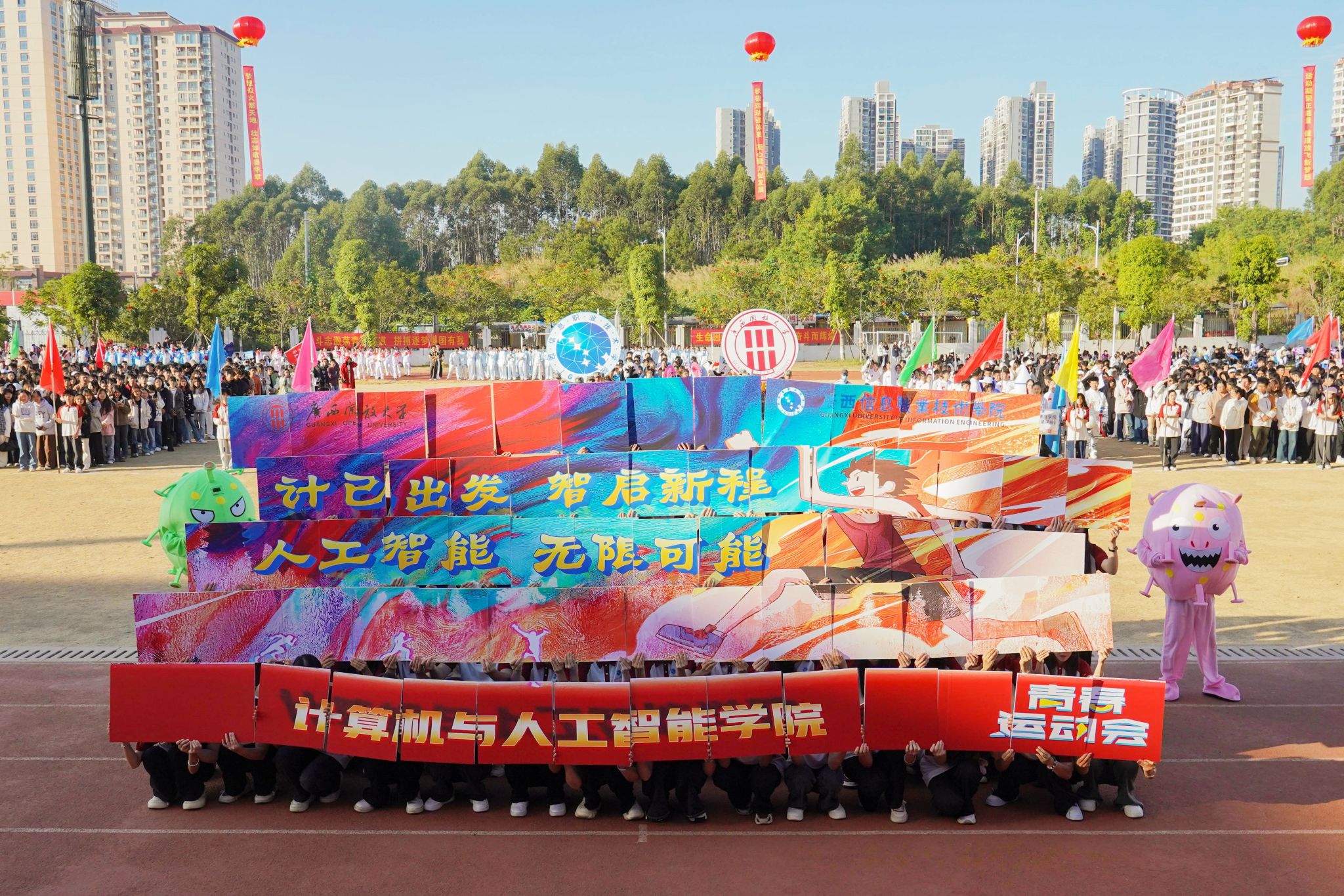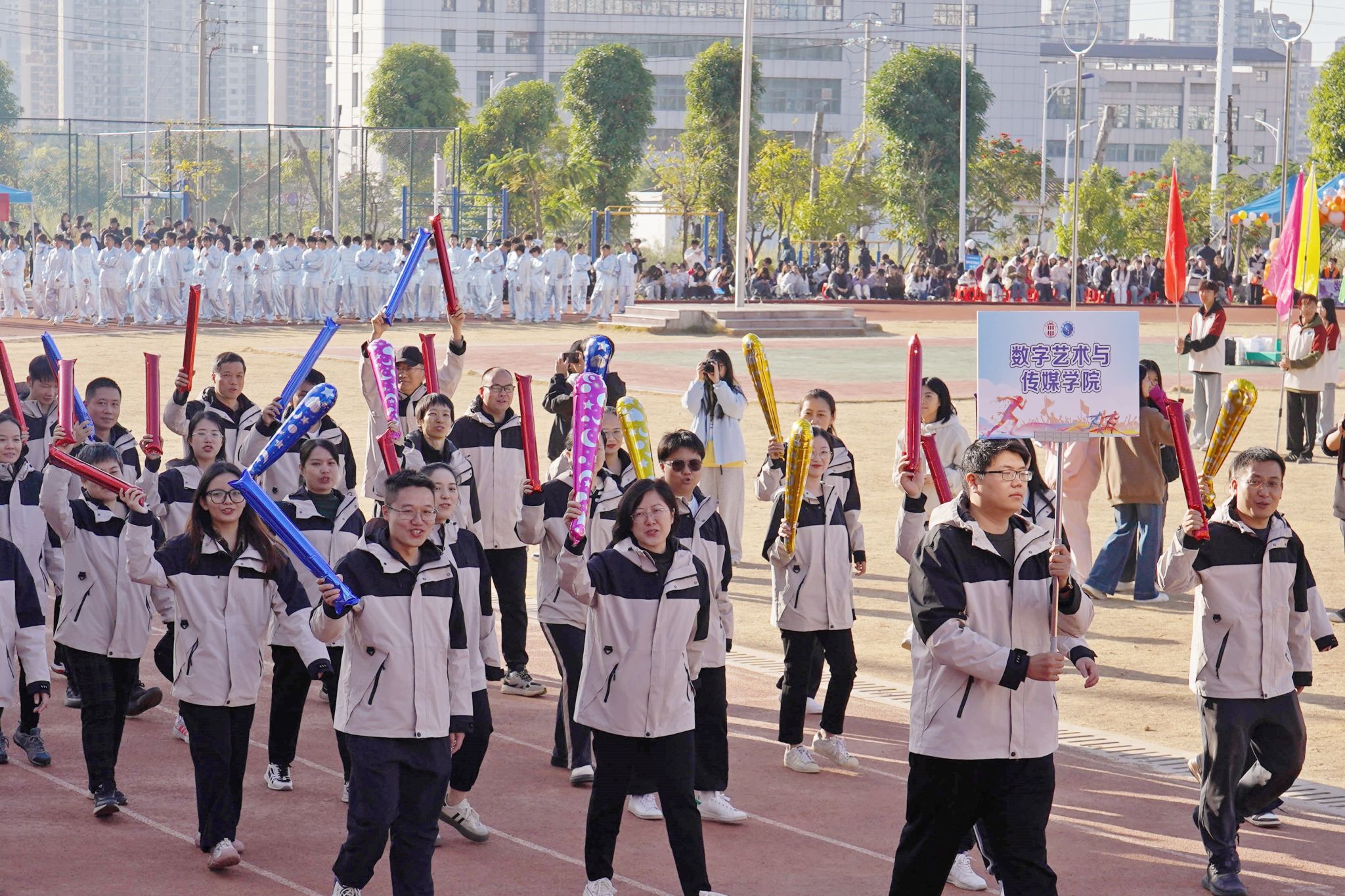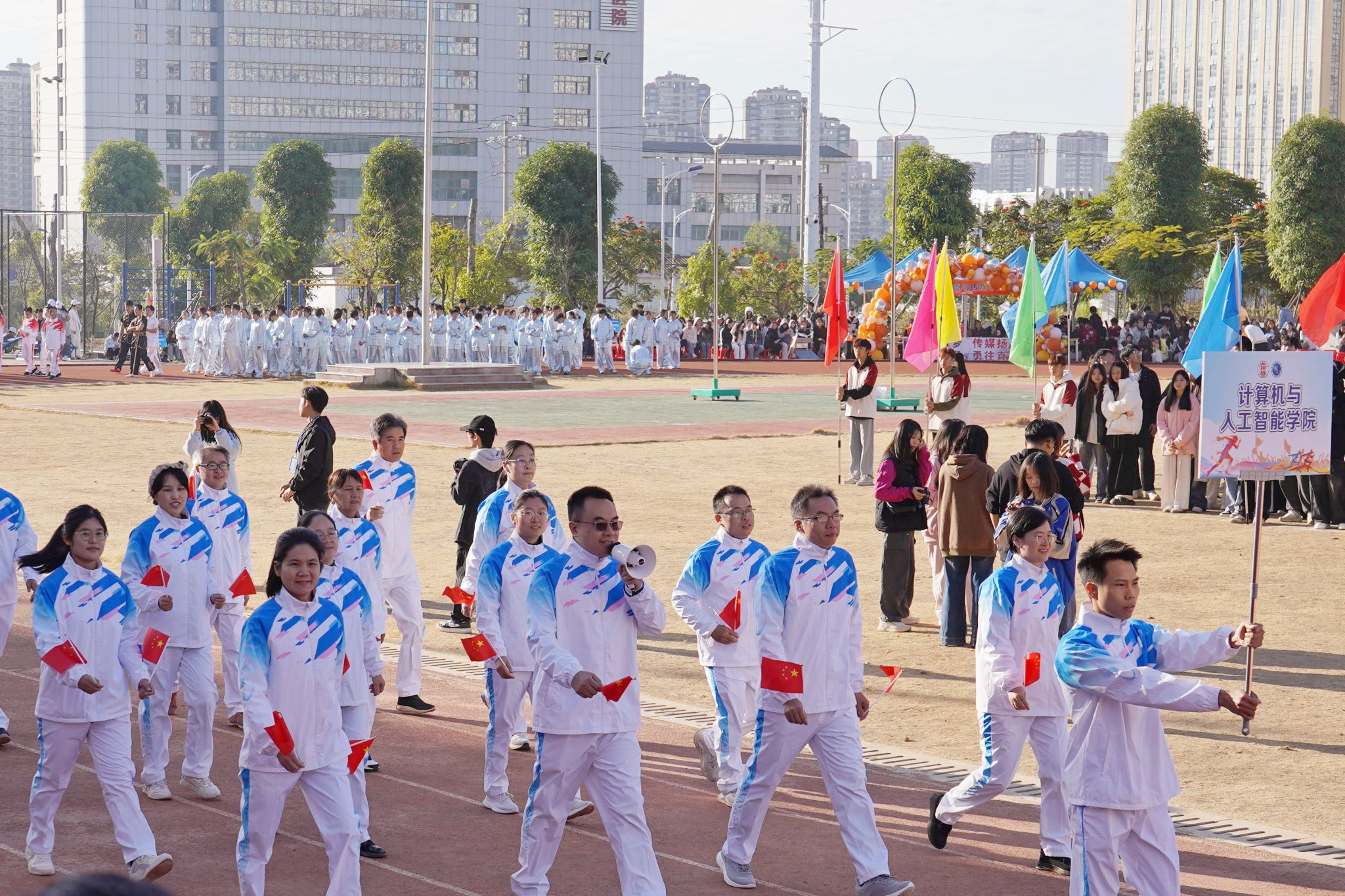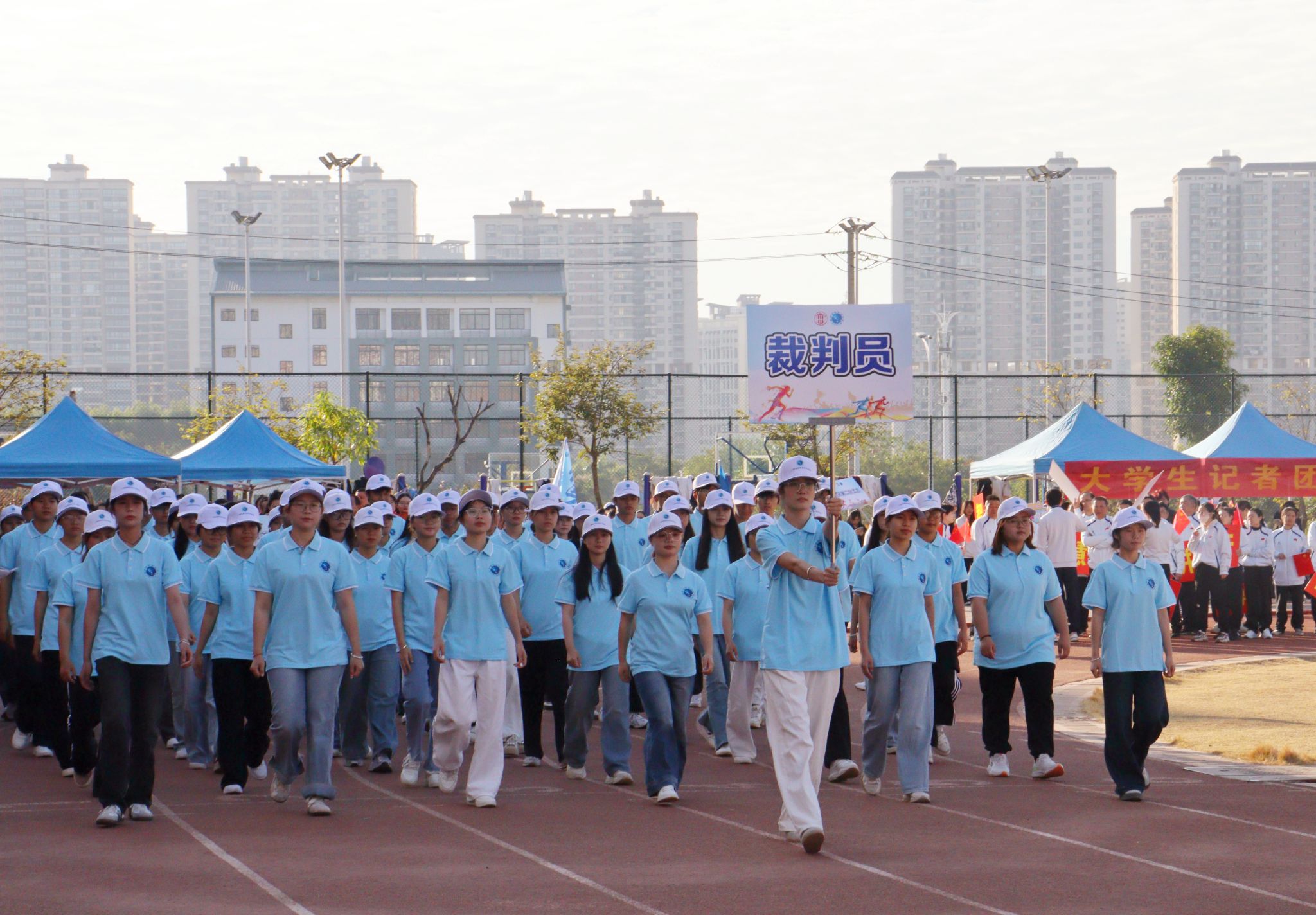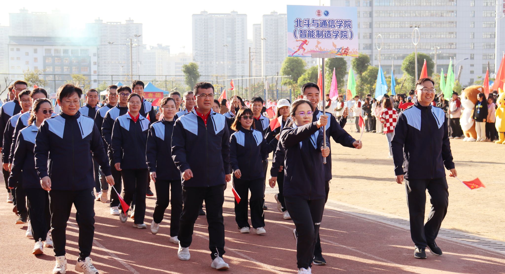 开幕式现场,高亢嘹亮的国歌声响起时,在场师生全体肃立,向国旗行注目礼并齐唱国歌,注视着鲜艳的五星红旗冉冉升起。伴随着慷慨有力的解说词和激昂的乐曲声,国旗队、校徽队、彩旗队、志愿者方块队、北斗与通信学院(智能制造学院)学生方块队、计算机与人工智能学院学生方块队、数字艺术与传媒学院学生方块队、数字经济与管理学院学生方块队、裁判员队,机关第一、二、三、四分工会方块队,北斗与通信学院(智能制造学院)分工会方块队、计算机与人工智能学院分工会方块队、数字艺术与传媒学院分工会方块队、数字经济与管理学院分工会方块队、马克思主义学院分工会方块队、通识教育学院(国际教育学院、对外交流合作中心)分工会方块队、太极武术队方块队有序入场。他们精神饱满,步调铿锵,口号嘹亮,队列展示各具特色,充分展现出了学校师生的卓然风采和昂扬斗志。