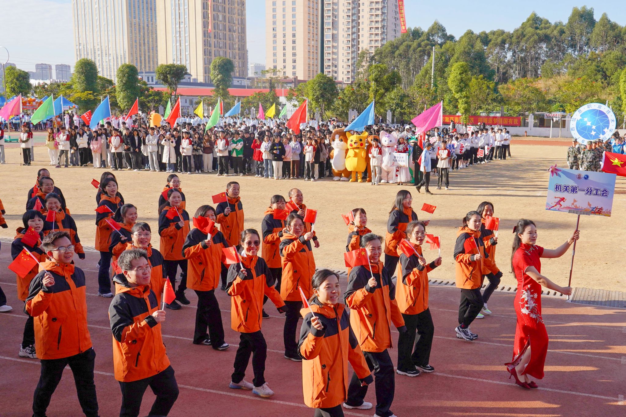 党委宣传部 郭昱轩报道 孟冬风劲催征帆,师生健儿展豪颜。11月29日上午,pg娱乐电子游戏官网入口第二届学生运动会暨第一届教职工运动会在五象校区田径场开幕。学校校长王兴辉、党委副书记龙雪津,副校长黄鹄、翁洁、李敏智、刘绍英、辛立章等,纪委书记侯宗毅,pg娱乐电子游戏官网入口副院长黄河、李国助、邓明学、陈广杰参加开幕式。开幕式由副校长刘绍英主持。
