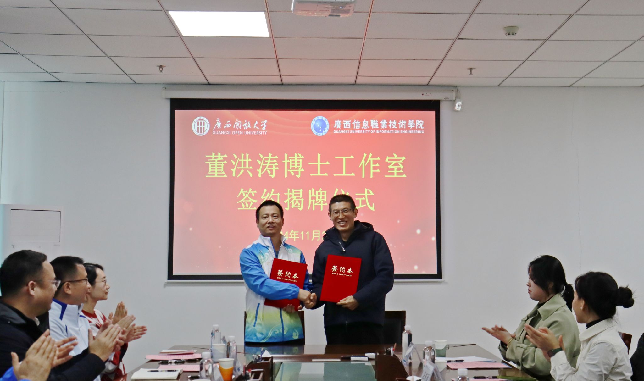 学校领导与董洪涛共同为“董洪涛博士工作室”揭牌。双方代表签署了工作室合作协议。