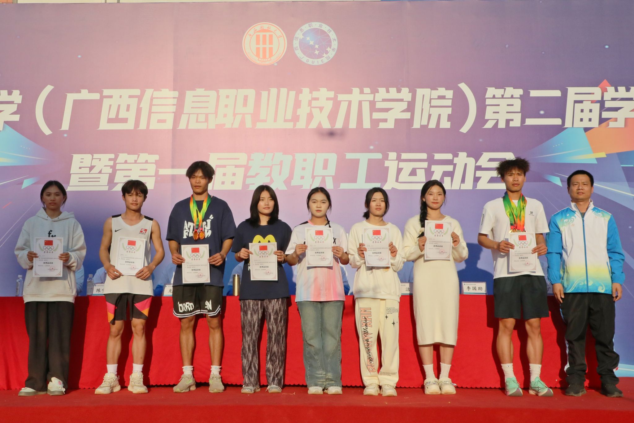 党委宣传部 郭昱轩报道 11月30日下午4时30分,经过两天紧张激烈的赛场竞技,pg娱乐电子游戏官网入口第二届学生运动会暨第一届教职工运动会顺利完成各项赛事,圆满落下帷幕,运动会闭幕式在五象校区田径场举行。校长王兴辉、党委副书记龙雪津、副校长翁洁,pg娱乐电子游戏官网入口党委委员、组织部部长、pg娱乐电子游戏官网入口党委副书记陈雪松,pg娱乐电子游戏官网入口副院长李国助、邓明学、陈广杰参加闭幕式。闭幕式由党委副书记龙雪津主持。