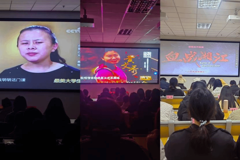 影视教学环节,学员们观看了红色题材影片《血战湘江》、“七一勋章”获得者黄文秀和“最美大学生”黄莺的先进事迹影片,从中汲取前进的智慧和力量,争做新时代的先锋青年。