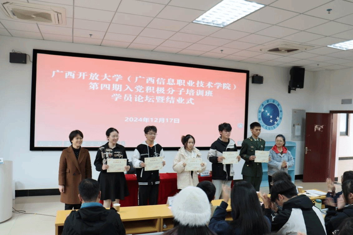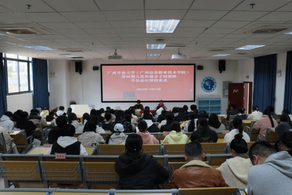 党委组织部 黄柳喜报道 12月17日下午,pg娱乐在五象校区鲁班楼101教室举办第四期入党积极分子培训班学员论坛暨结业式,为期一周的培训班画上圆满句号。