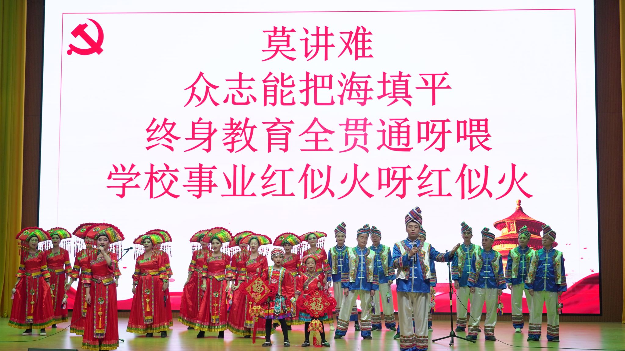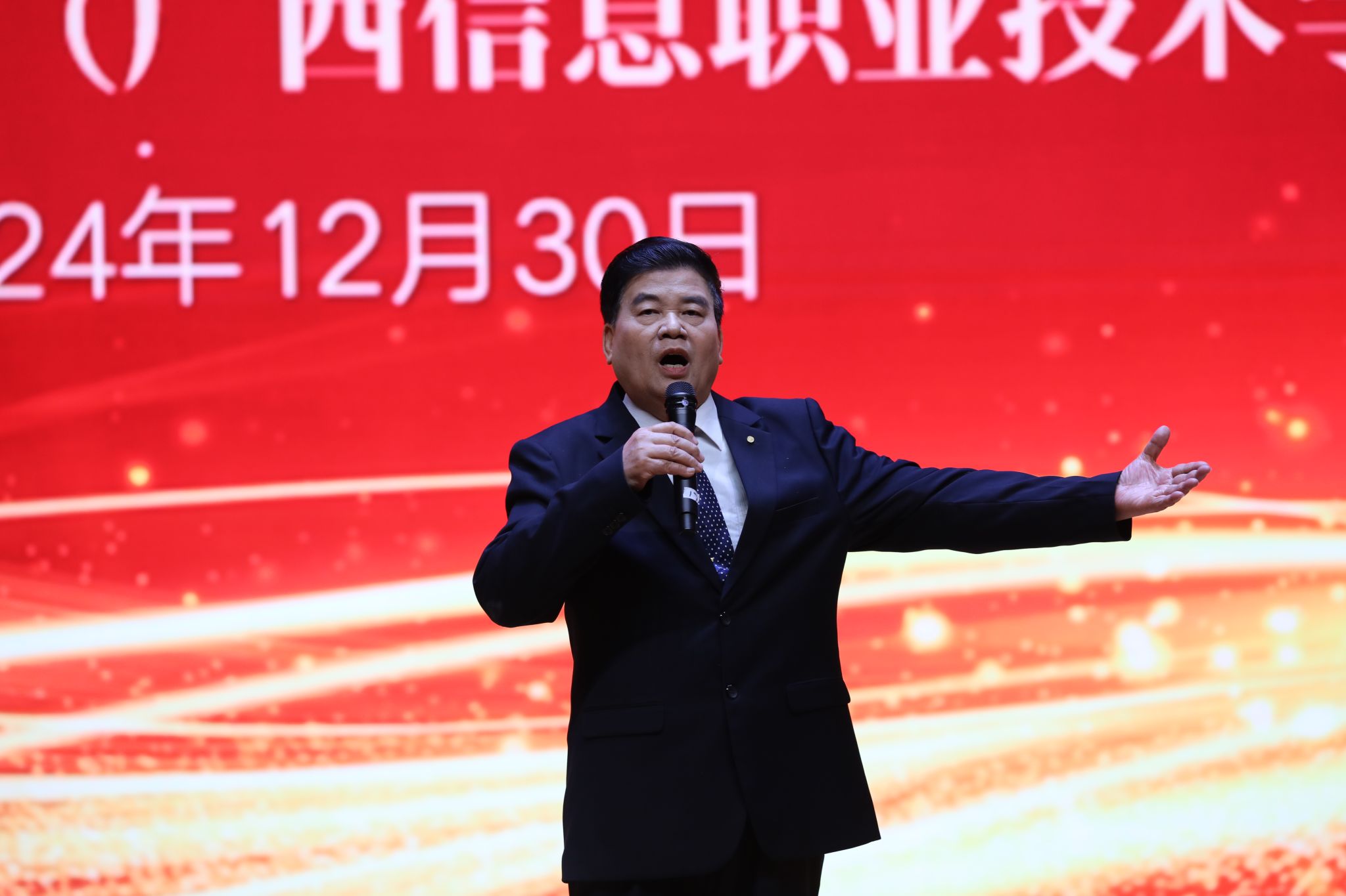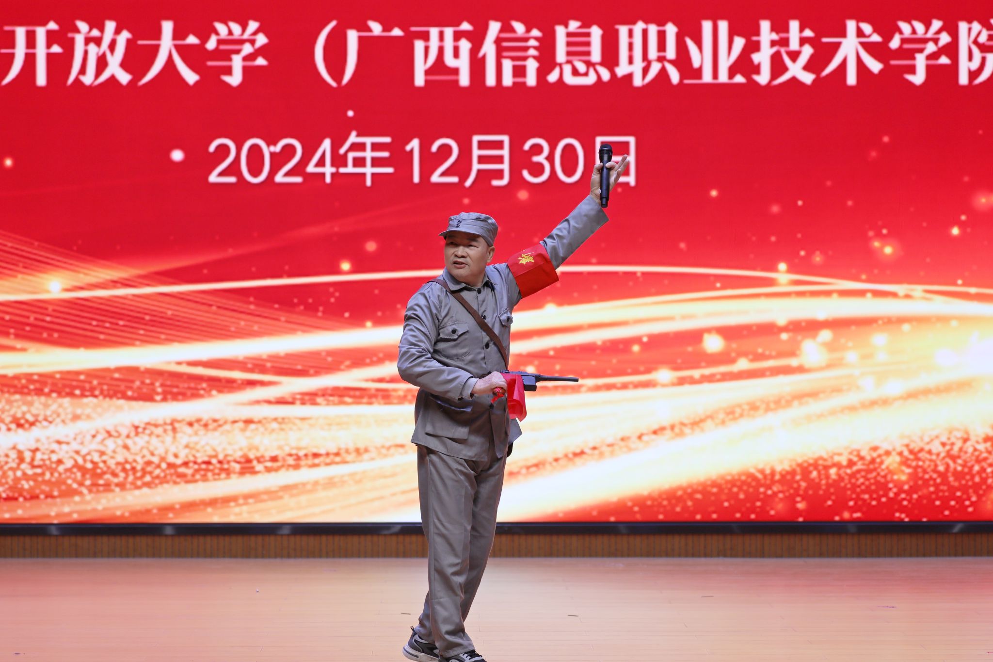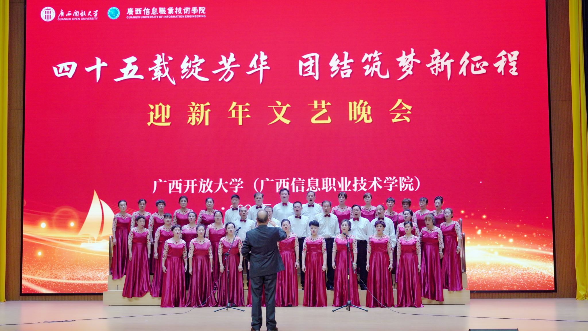 学校首先向过去一年关心支持学校发展的离退休干部,为学校建设付出辛劳、作出贡献的全体师生员工表示诚挚的感谢,并与在场观众一起回顾了学校45年来建设发展的辉煌历程。2024年在学校党委的团结带领下,学校始终坚守教育初心,顺势启新、开放致远,坚持以促进全民终身学习为使命,扎根八桂大地,努力办好人民满意的教育,各项事业发展欣欣向荣。学校提出,我们将以新中国成立75周年和学校建校45周年为崭新起点,继续“扬帆起航,乘风破浪”,深入推进教育教学改革,提升科研创新能力,加强国际交流与合作,努力培养更多德才兼备、博学多才的高素质人才,为祖国的繁荣昌盛贡献我们的智慧与力量。