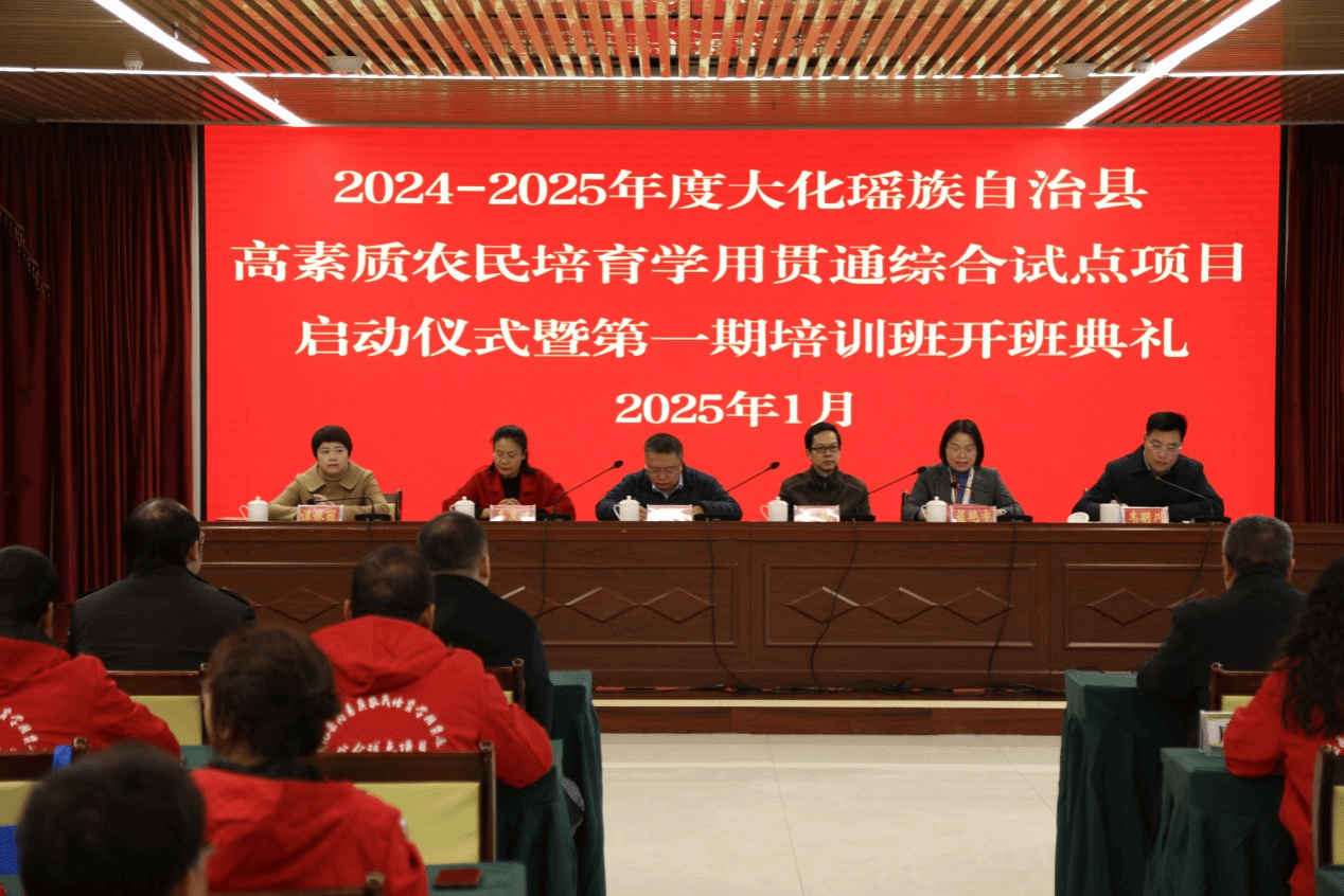 培训学院 李春阳报道 1月16日,大化瑶族自治县高素质农民培育学用贯通综合试点项目启动仪式暨第一期培训班开班典礼在大化瑶族自治县举行。广西壮族自治区农业农村厅、pg娱乐电子游戏官网入口、广西壮族自治区农业广播电视学校、河池市农业农村局、大化瑶族自治县农业农村局相关人员参加开班仪式。