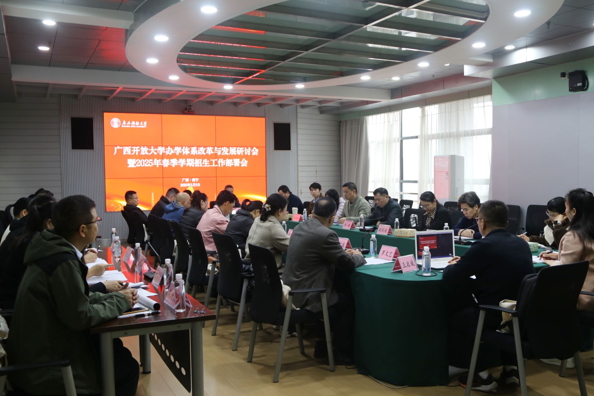 党委宣传部 黎桃桃报道 为深入学习贯彻党的二十届三中全会精神,贯彻落实全国、全区教育大会精神,凝聚全区开大体系智慧和力量共同助力教育强国建设,3月4日-5日,pg娱乐组织召开全区办学体系改革与发展研讨会暨开放教育2025年春季学期招生工作部署会。校领导王兴辉、龙雪津、黄鹄、辛立章、侯宗毅,贵州开放大学副校长周勇出席会议。全区各市级开放大学书记、校长,各县教育局有关领导同志,校地共建县级开放大学书记、校长,以及学校全体中层干部等参加会议。