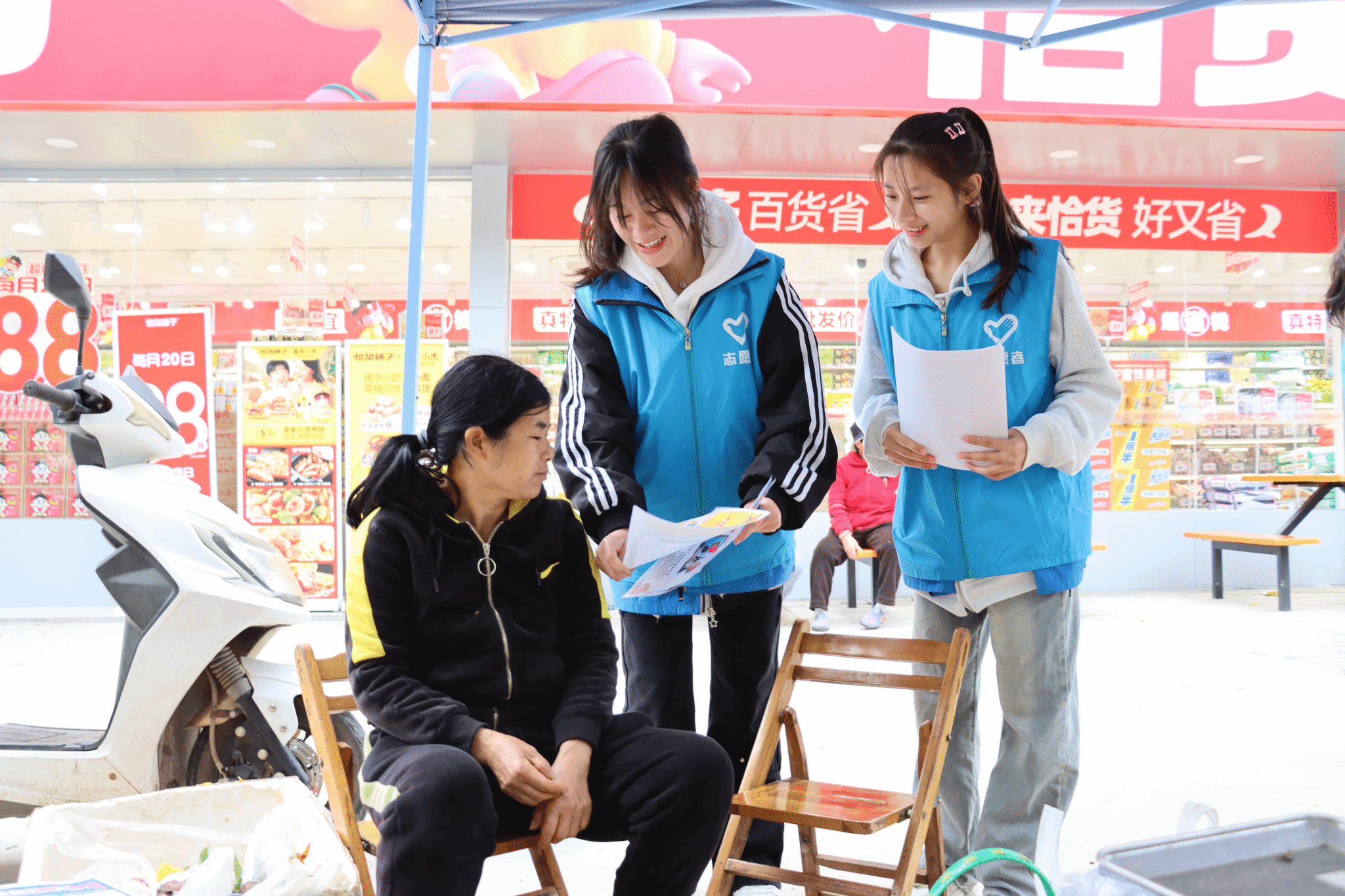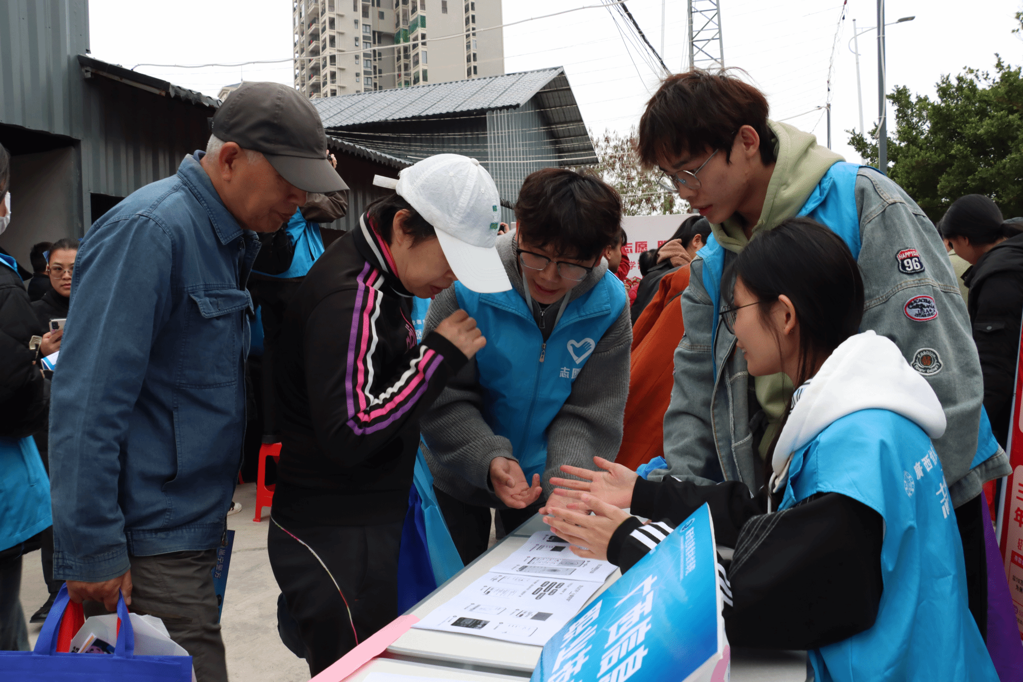 青年志愿者们帮助老年群体解决手机操作相关问题