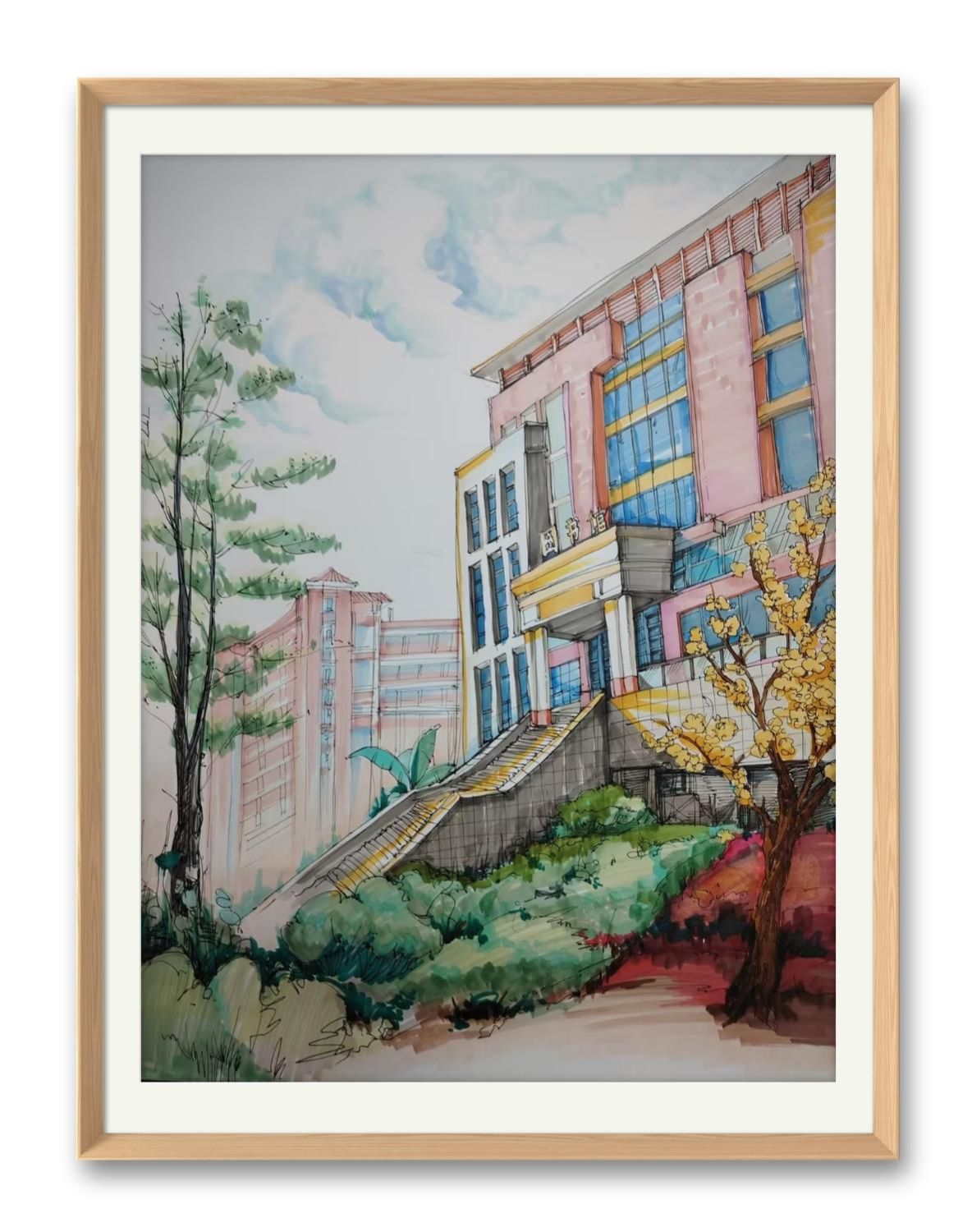 导语:色彩的温柔与山歌的炽烈,在春风里撞了个满怀。12位学子以笔为媒、以色作韵,让图书馆的倒影在画面中流淌成歌圩,将实训楼的虹影揉进高明度色块——原来画纸上的校园,藏着另一部《廖江竹枝词》。