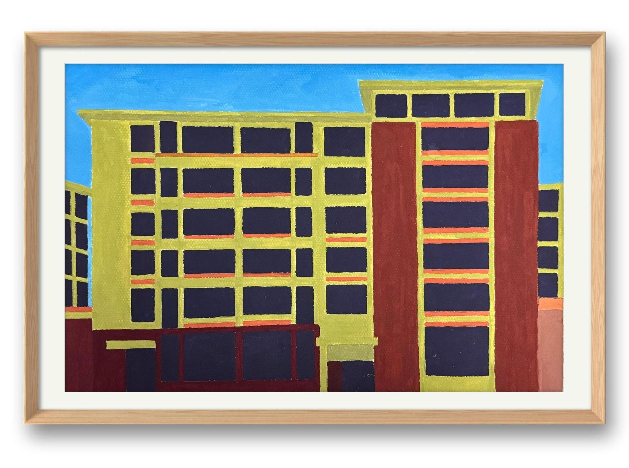建筑群披六阶金光矗立,窗下橘红横线是黎明的装饰音