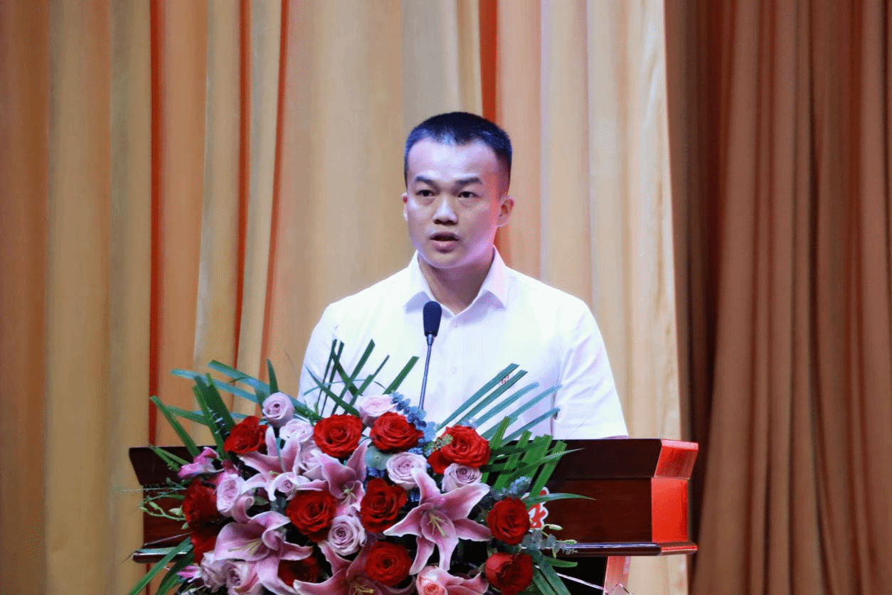 新生代表覃树鹏(2025年春季本科汉语言文学专业、平陆运河集团有限公司先进工作者)发言