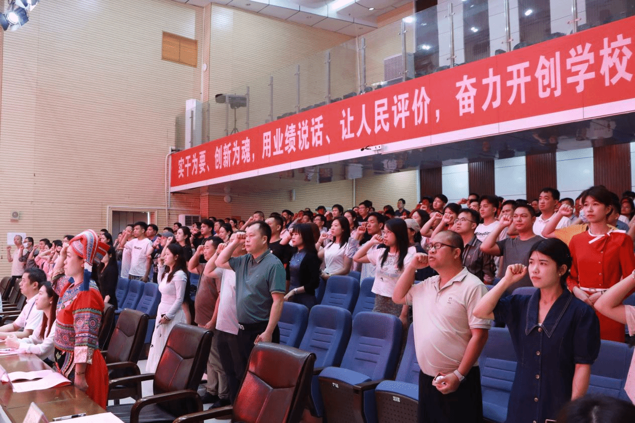典礼上,学校领导为新生代表授予校徽。新生代表韦先蔓带领全体新生进行了诚信宣誓仪式。教师代表陈艺琛,新生代表覃树鹏和老生代表韦益兰分别作了发言。全体师生合唱pg娱乐电子游戏官网入口校歌《身边的大学》并合影留念。同学们纷纷表示,开学典礼寄托着学校领导和老师们殷切的期望,他们将在终身学习中不断提高政治素养、丰富专业知识、提升岗位技能,做到学有所成,让未来的人生更加充实精彩!