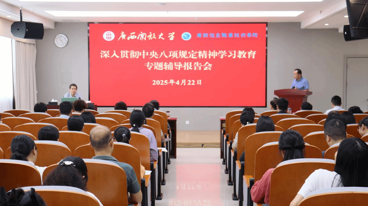 党委宣传部 黄杰瑶报道 4月22日,学校举办深入贯彻中央八项规定精神学习教育专题辅导报告会,邀请中共广西区委党校教授陶建平作专题辅导报告。学校党委副书记、校长王兴辉主持报告会。