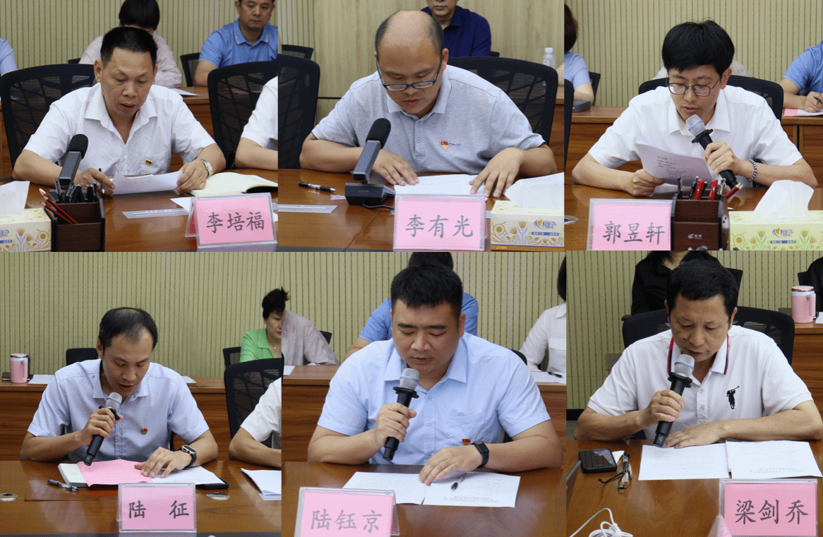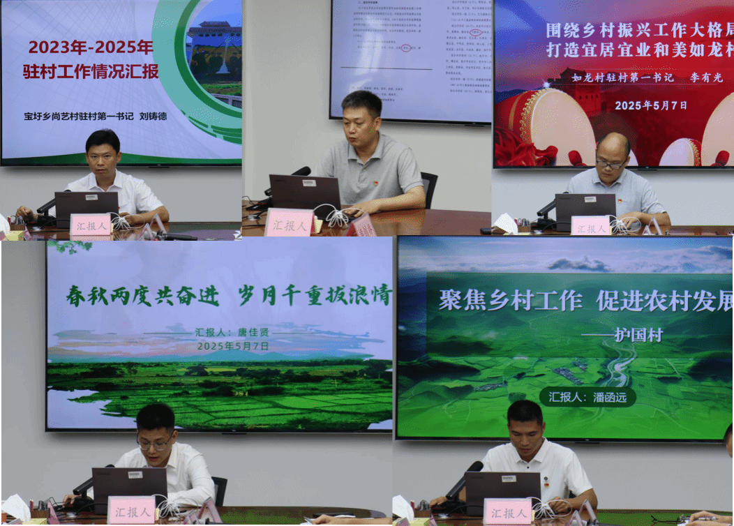 上一轮驻村第一书记刘铸德、黄海、唐佳贤、李有光、潘函远分别汇报了驻村工作情况。新一轮驻村工作队员依次作表态发言。