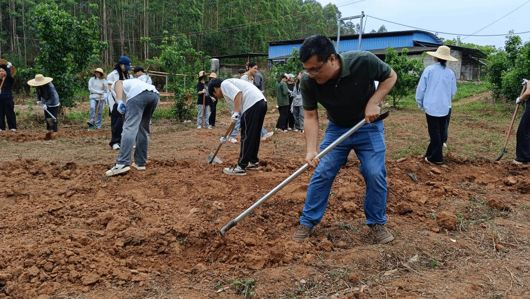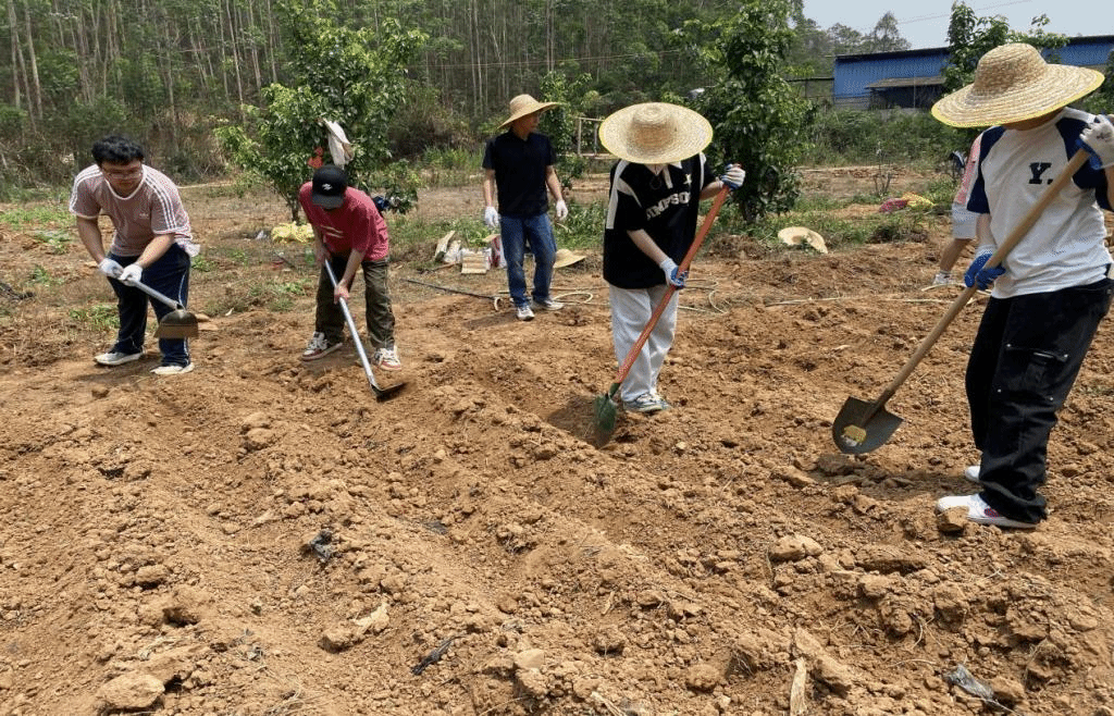师生共同翻地、挖渠、施肥