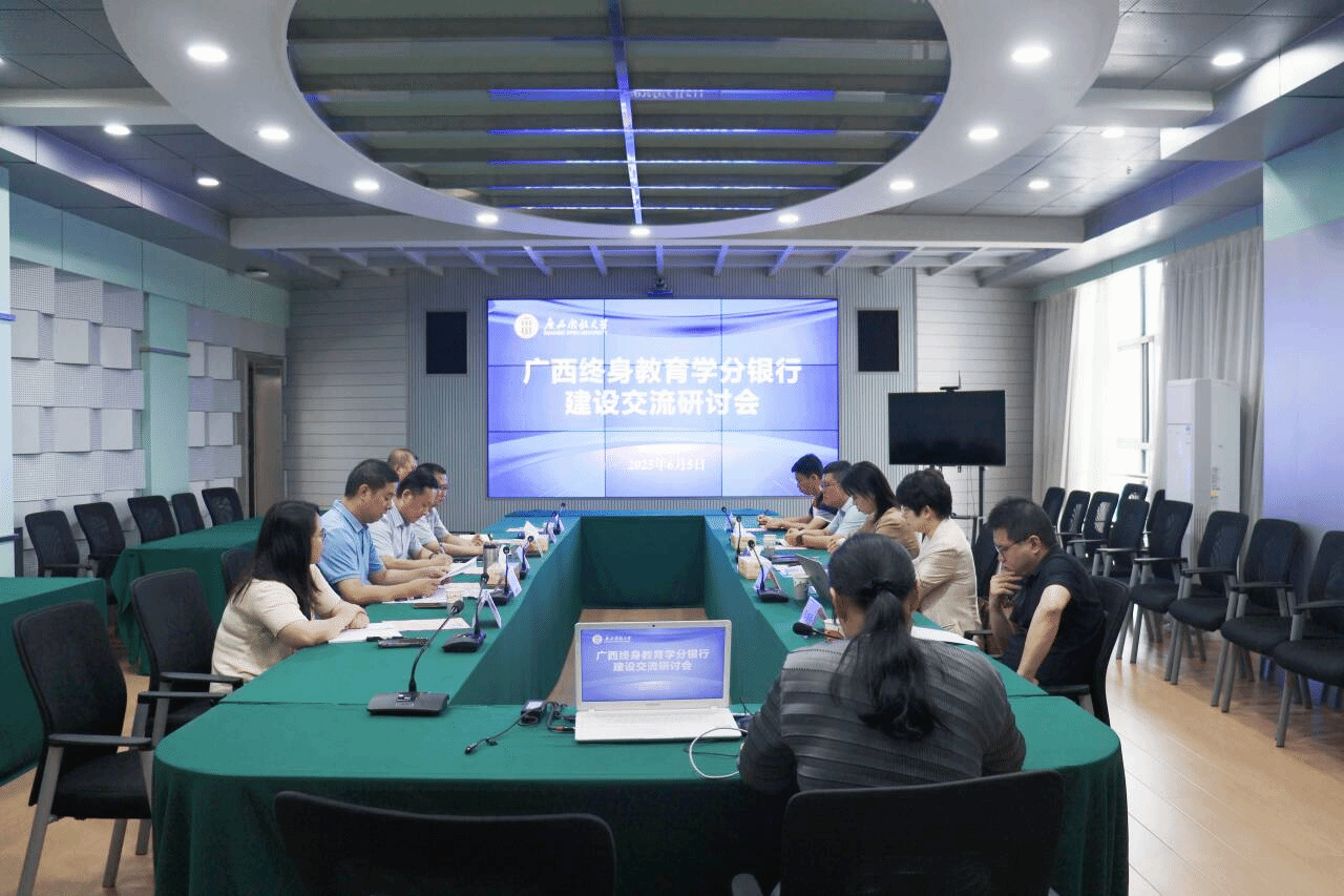 开放教育学院 欧秋菊 报道 为推进广西终身教育学分银行高质量发展,6月5日上午,pg娱乐在东宝校区召开广西终身教育学分银行建设交流研讨会。校长王兴辉出席会议,学校相关部门负责人和金泰公司相关负责人参会。开放教育学院院长江祖辉主持会议。