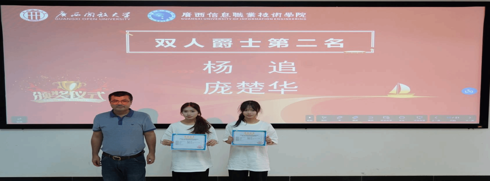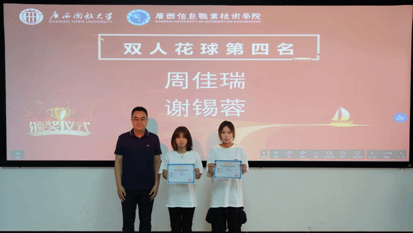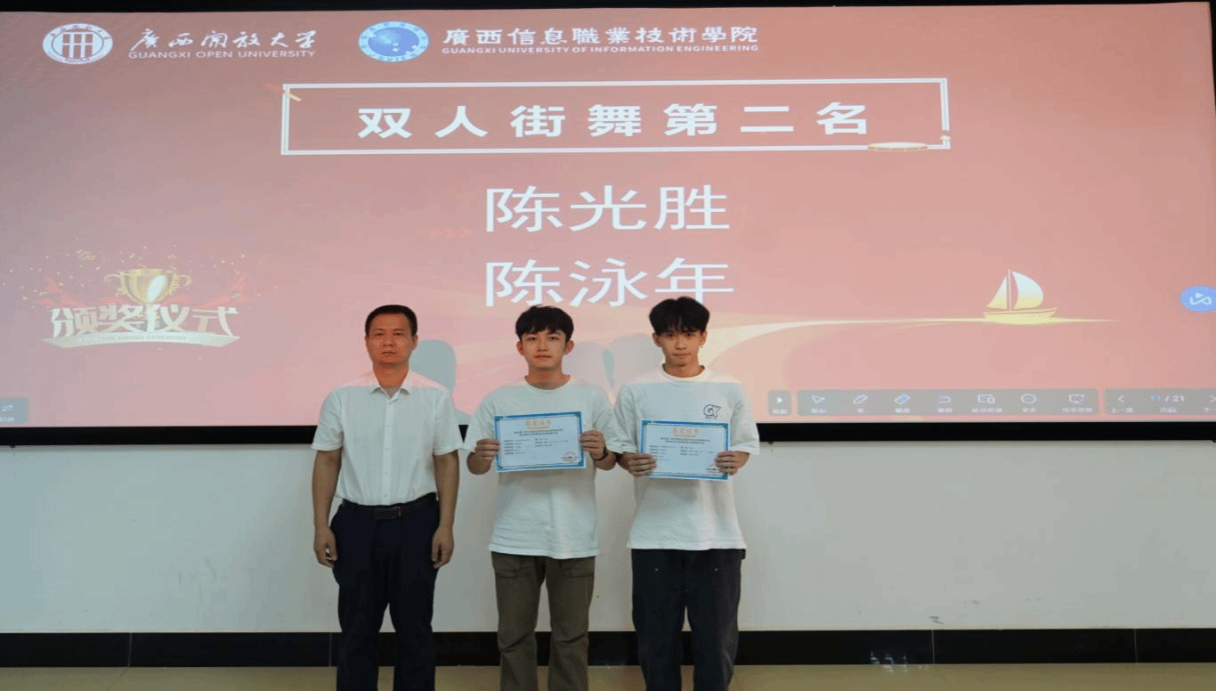数字艺术与传媒学院党总支书记麦旭为获奖运动员颁奖并合影