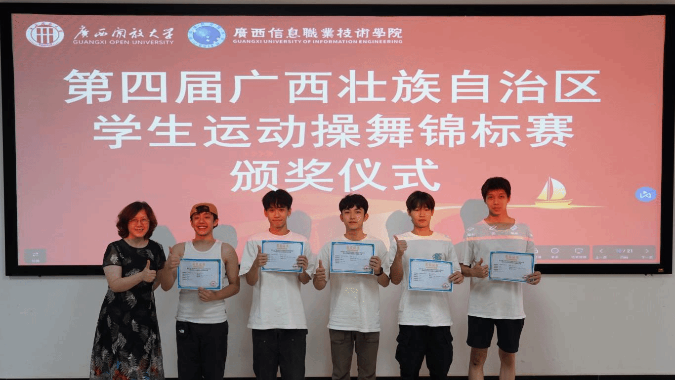 仪式上,在广西壮族自治区第四届学生运动操舞比赛中斩获佳绩的校啦啦操代表队获表彰。与会领导分别为在双人街舞、双人爵士、双人花球及霹雳舞等项目获奖的运动员颁发奖状。这不仅是对获奖运动员努力的肯定,也为即将出征的运动员们树立了榜样,激励着大家以更饱满的热情投入到比赛。全体人员观看了《pg娱乐电子游戏官网入口备战广西壮族自治区第十四届学生运动会实录》视频。视频中,运动员们训练时挥汗如雨、教练耐心指导、后勤团队全力保障的画面,生动展现了学校积极备赛的过程。