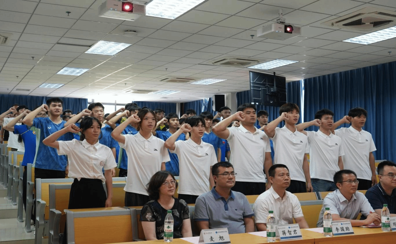 邓明学在致辞中表示,体育是教育不可或缺的部分,他鼓励运动员发扬中华体育精神,团结协作、顽强拼搏,以昂扬姿态赛出水平、赛出风格。同时,他还对全体备赛人员的努力付出表示感谢。邓明学为出征队伍授战旗,全体参赛运动员庄严宣誓:“遵规守纪,恪守赛风赛纪;奋勇争先,秉持拼搏之志;尊重对手,弘扬体育美德;挑战极限,书写赛场华章;为校而战,誓创辉煌佳绩”。