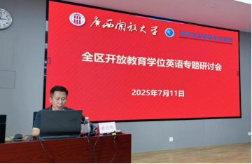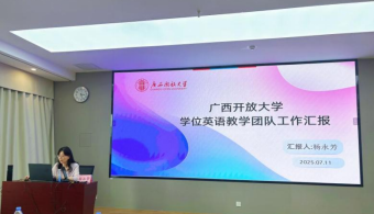 通识教育学院 冯颖 报道 为深化教育教学改革,提高学位英语教学质量,7月11日,学校召开全区开放教育学位英语专题研讨会。副校长黄远鸣出席会议并致辞,通识教育学院院长韦览恩宣布成立“pg娱乐电子游戏官网入口学位英语中心教研组”,学院教授杨永芳汇报2024—2025年学位英语考试工作,并传达国家开放大学学位英语考试最新会议精神。会议由通识教育学院英语教研室主任李圆圆主持。
